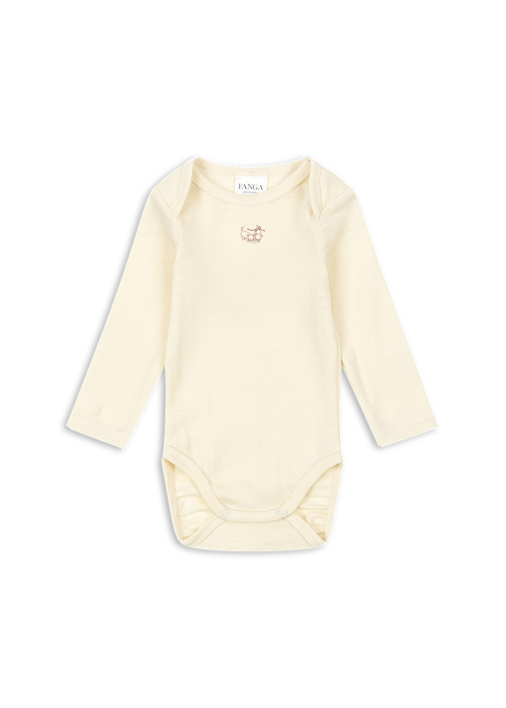 Nasze wełniane body z długim rękawem to idealna warstwa bazowa dla niemowląt. Wykonane w 100% z wełny merynosów, to ubranie jest naturalnie miękkie, hipoalergiczne i pomaga regulować temperaturę ciała.