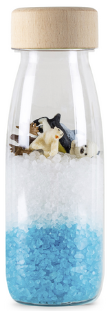 Butelki sensoryczne od Petit Boum to kolorowy świat zamknięty w niewielkiej, przystępnej dla dziecka formie. Bawią, uczą i stymulują wyobraźnię! Pozwól swojemu dziecku poruszać, potrząsać i manipulować butelką, aby odkrywać kolory i figurki tematyczne zamknięte w butelce. Różnorodna zawartość butelek pozwala odkrywać nowe, ciekawe dźwięki charakterystyczne dla ukrytych w butelce elementów. Z butelką Arktyka zanurzysz się w arktycznym świecie i odkryjesz ukryte za grubą warstwą lodu zwierzęta polarne. Gdy promienie słońca przenikają przez butelkę, lód ukazuje swoje piękne odcienie bieli i błękitu, tworząc hipnotyzujący widok. Czy uda Ci się znaleźć pingwina, który zaginął na biegunie południowym?