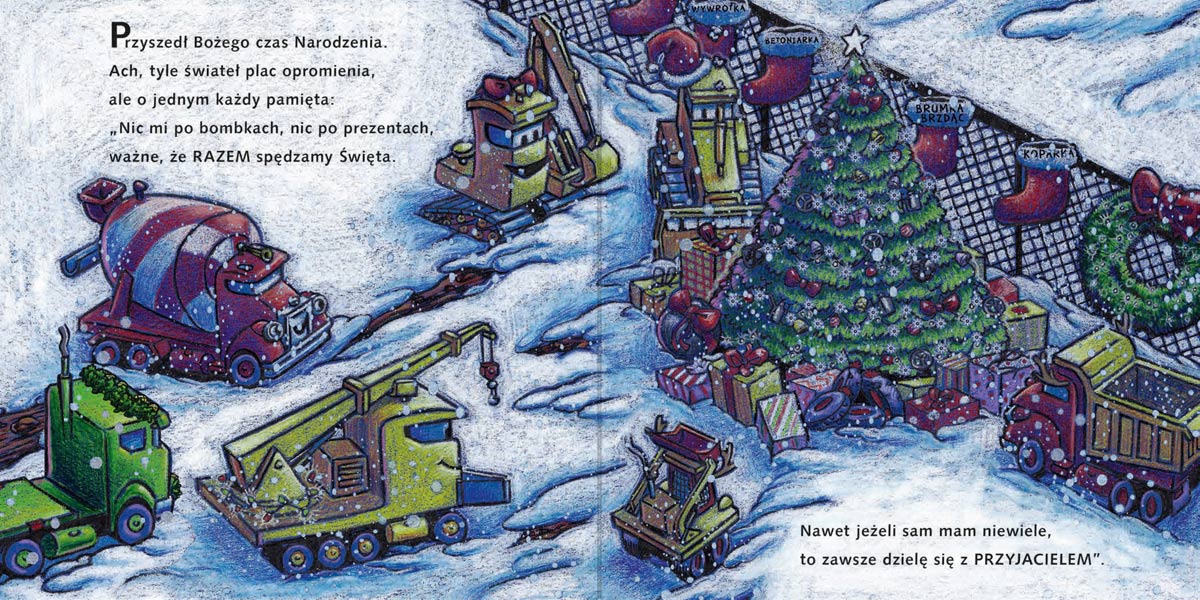 Dziś Wigilia… Czas ubrać choinkę! Przyjaciele z placu budowy muszą zrobić już tylko jedno: przygotować się do Świąt. Ten wieczór będzie jednak pełen niespodzianek. Jakich? Dowiecie się po otwarciu wszystkich kartonowych okienek. A to wcale nie koniec bożonarodzeniowych cudów. Największy z nich odkryjecie, gdy zalśni pierwsza gwiazdka…