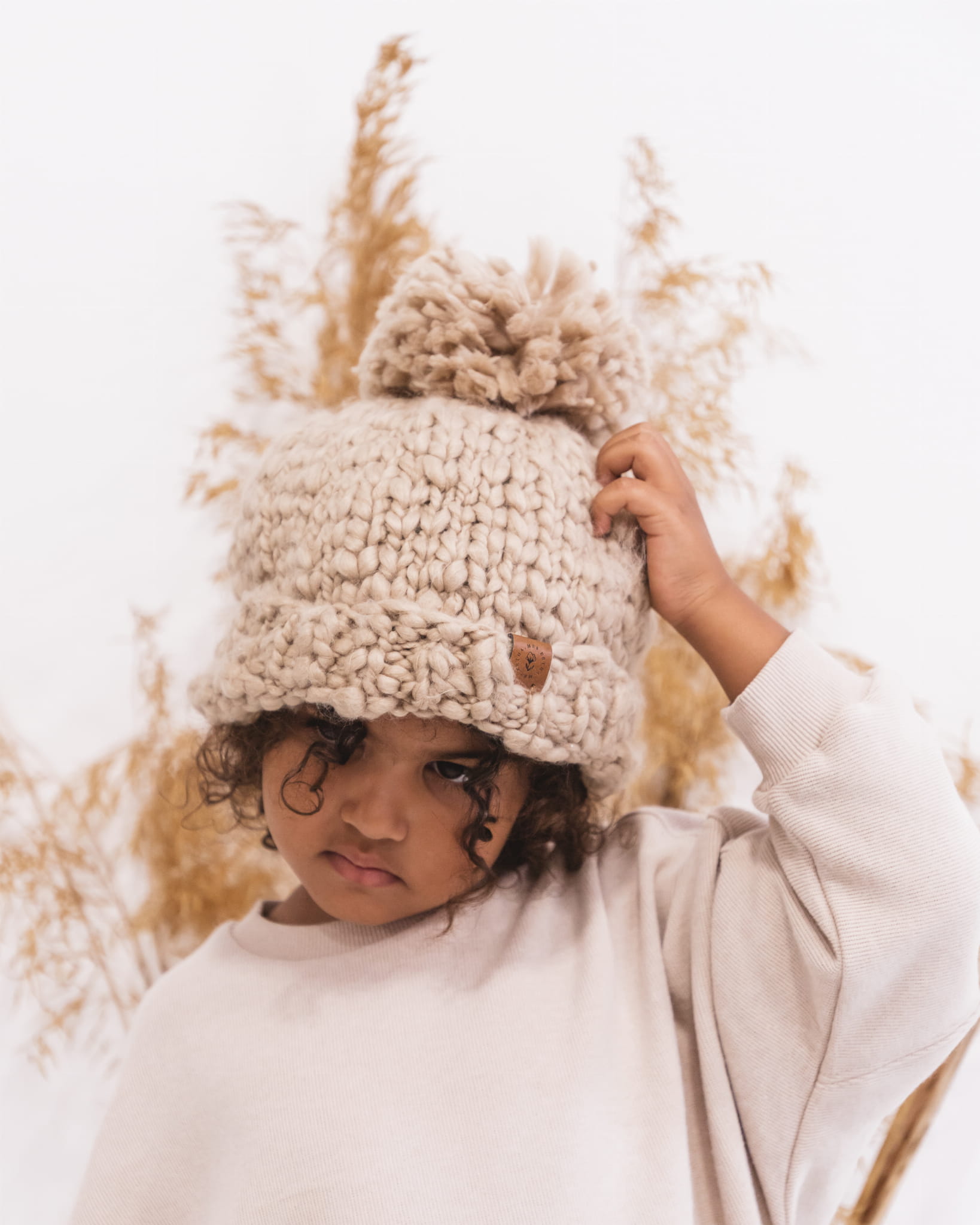 Ręcznie robiona, czapka Bennie od Mrs Ertha, zapewni ciepło i komfort bez względu na pogodę.
