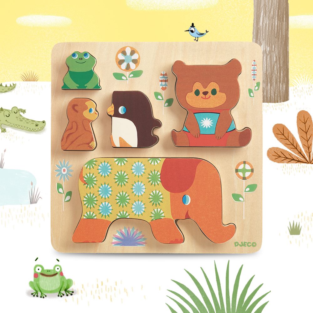 Drewniane puzzle DJECO - PIRAMIDA ZWIERZĄT