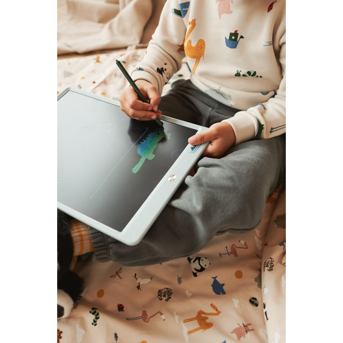 Pozwól swojemu dziecku rozwinąć kreatywność, gdziekolwiek jest, dzięki lekkiej i przenośnej desce do rysowania ZORA. Powierzchnia deski tworzy linie o różnej grubości w zależności od siły nacisku, a obraz można zapisać i usunąć jednym dotknięciem przycisku. Twórz bez końca, bez konieczności ładowania.