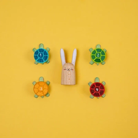 Gra kooperacyjna inspirowana bajką o zającu i żółwiu, dla dzieci od 5 lat.