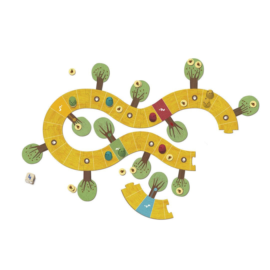 Gra polegająca na podróżowaniu po planszy i opracowaniu strategii działań dla maksymalnie 4 graczy. Wiewiórka, której uda się przynieść najwięcej żołędzi do swojej norki, jest zwycięzcą!