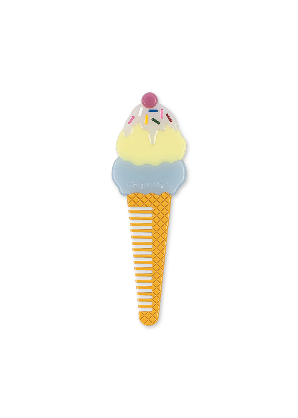 Uroczy i dekoracyjny grzebień w kształcie lodów, który sprawi, że rozczesywanie włosów stanie się dla wszystkich odrobinę przyjemniejsze. Grzebień wykonany jest w 100% z octanu i jest dostarczany w uroczym, ozdobnym pudełku, które idealnie nadaje się jako drobny upominek do przechowywania grzebienia między użyciami.
