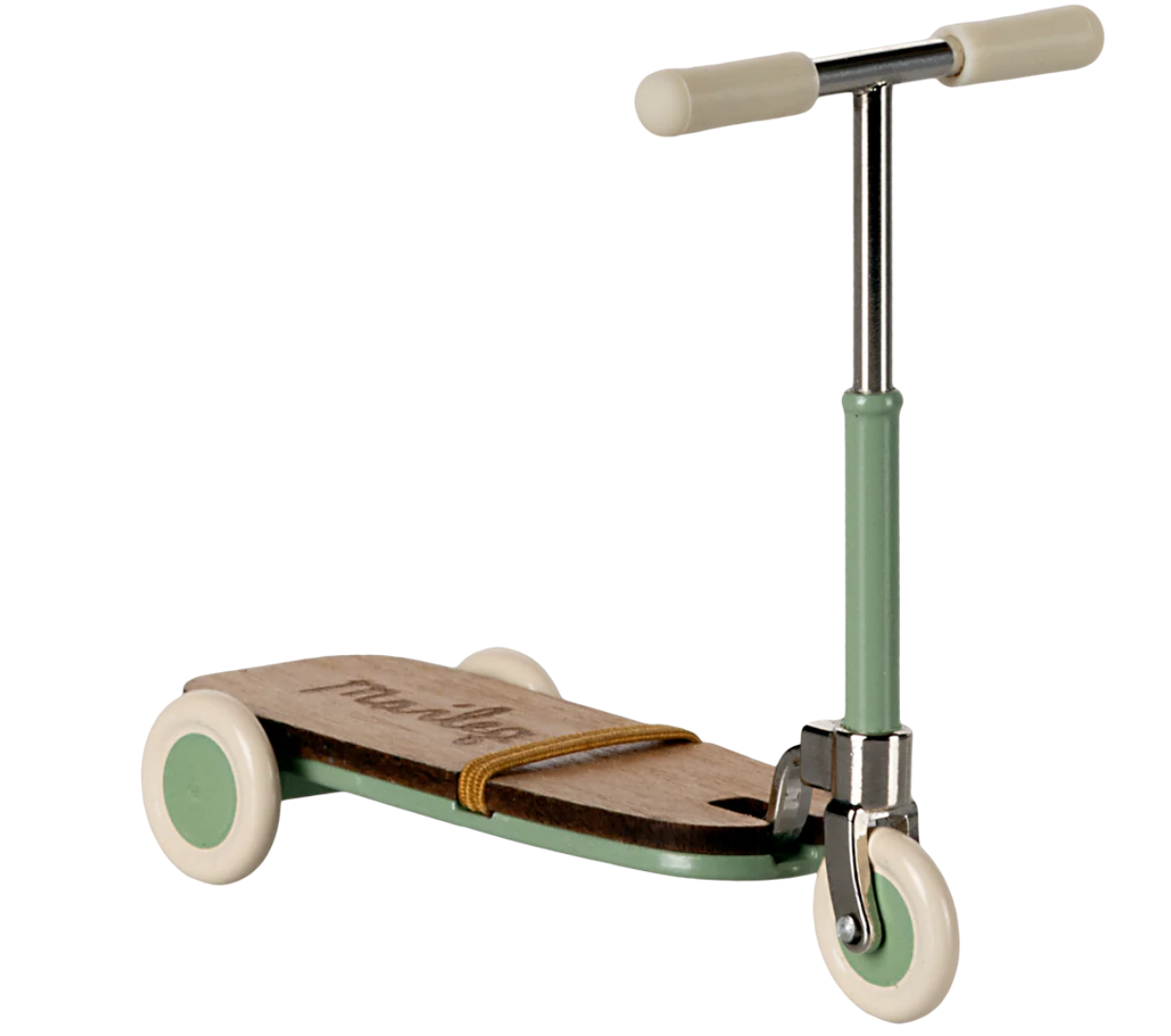 Hulajnoga dla myszek z drewnianymi detalami. Posiada metalowy drążek w kierownicy, który sprawia, że myszy z magnesami w dłoniach mogą czuć się stabilnie podczas jazdy. Do deski dołączona jest mała gumka, która zabezpiecza stopy myszek.