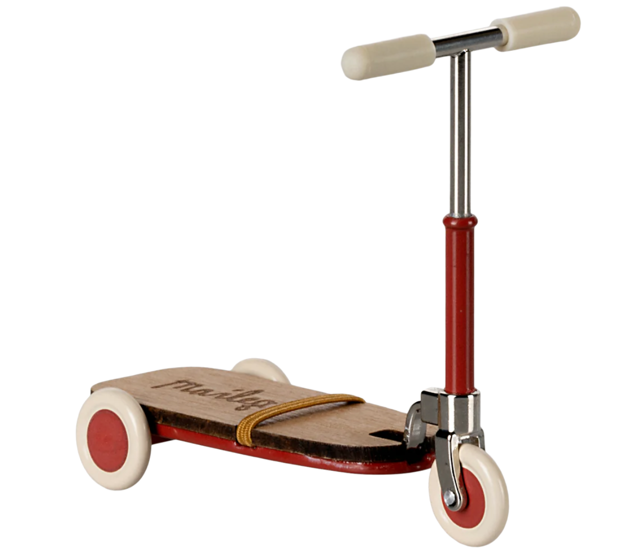 Hulajnoga dla myszek z drewnianymi detalami. Posiada metalowy drążek w kierownicy, który sprawia, że myszy z magnesami w dłoniach mogą czuć się stabilnie podczas jazdy. Do deski dołączona jest mała gumka, która zabezpiecza stopy myszek.