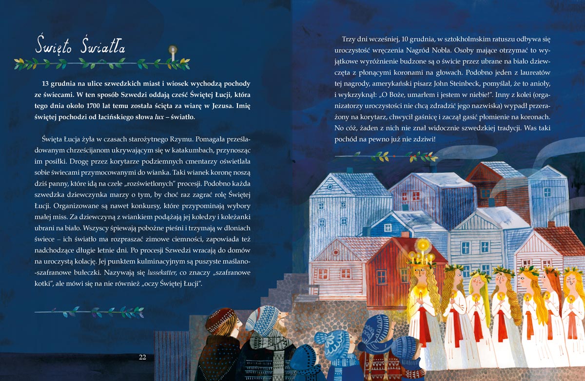 Czy można wyobrazić sobie zimę bez Bożego Narodzenia, pełnego zapachów, smaków i niezapomnianych tradycji? Nie! Ale czy rzeczywiście wszystkie je znacie i czy są takie same na całym świecie? Przekonajcie się! Znajdziecie tu odpowiedzi na takie pytania jak: dlaczego Boże Narodzenie obchodzimy akurat 25 grudnia? Dlaczego organizuje się bożonarodzeniowe jarmarki? Czy wszystkie dzieci dostają prezenty tego samego dnia? Dlaczego ubieramy choinkę? Kto wymyślił pierwsze szklane bombki? Dlaczego buduje się bożonarodzeniowe szopki? Poza tym przeczytacie tu również o świątecznych roślinach, pierwszej gwiazdce, a nawet o Ebenezerze Scrooge’u i Dziadku do Orzechów. Nowe wydanie zostało uzupełnione między innymi o teksty najbardziej znanych kolęd, a także rozdziały o Chanuce, bożonarodzeniowych hitach filmowych i muzycznych, niezwykłym przemarszu z pochodniami, koncercie noworocznym i chińskim Nowym Roku!