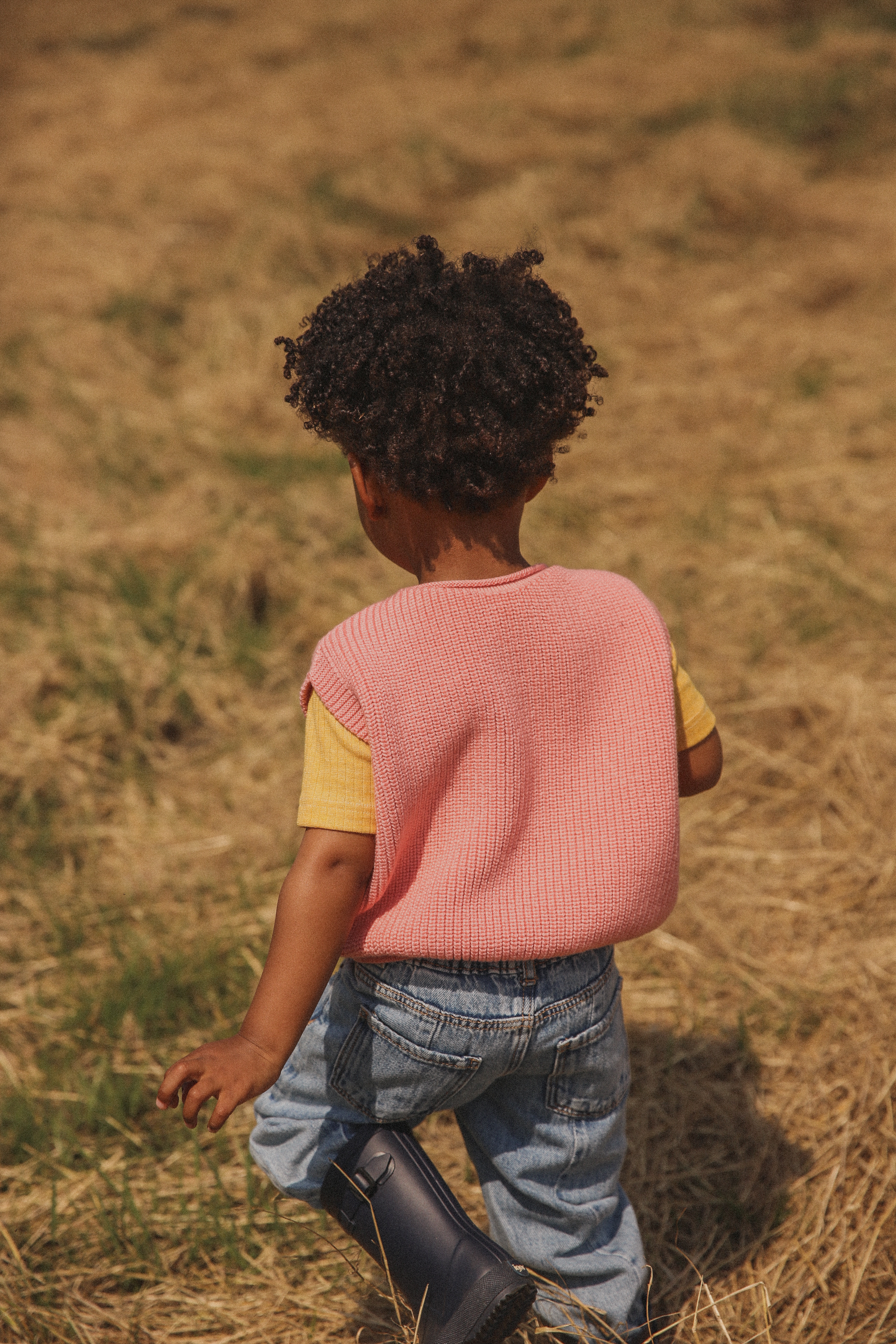 Bezszwowa kamizelka wykonana z dzianiny jednoczęściowej, dzięki czemu jest bardzo wygodna dla dzieci.