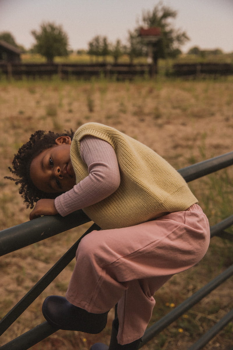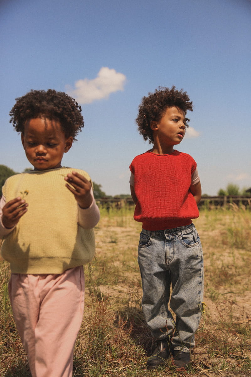 Bezszwowa kamizelka wykonana z dzianiny jednoczęściowej, dzięki czemu jest bardzo wygodna dla dzieci.