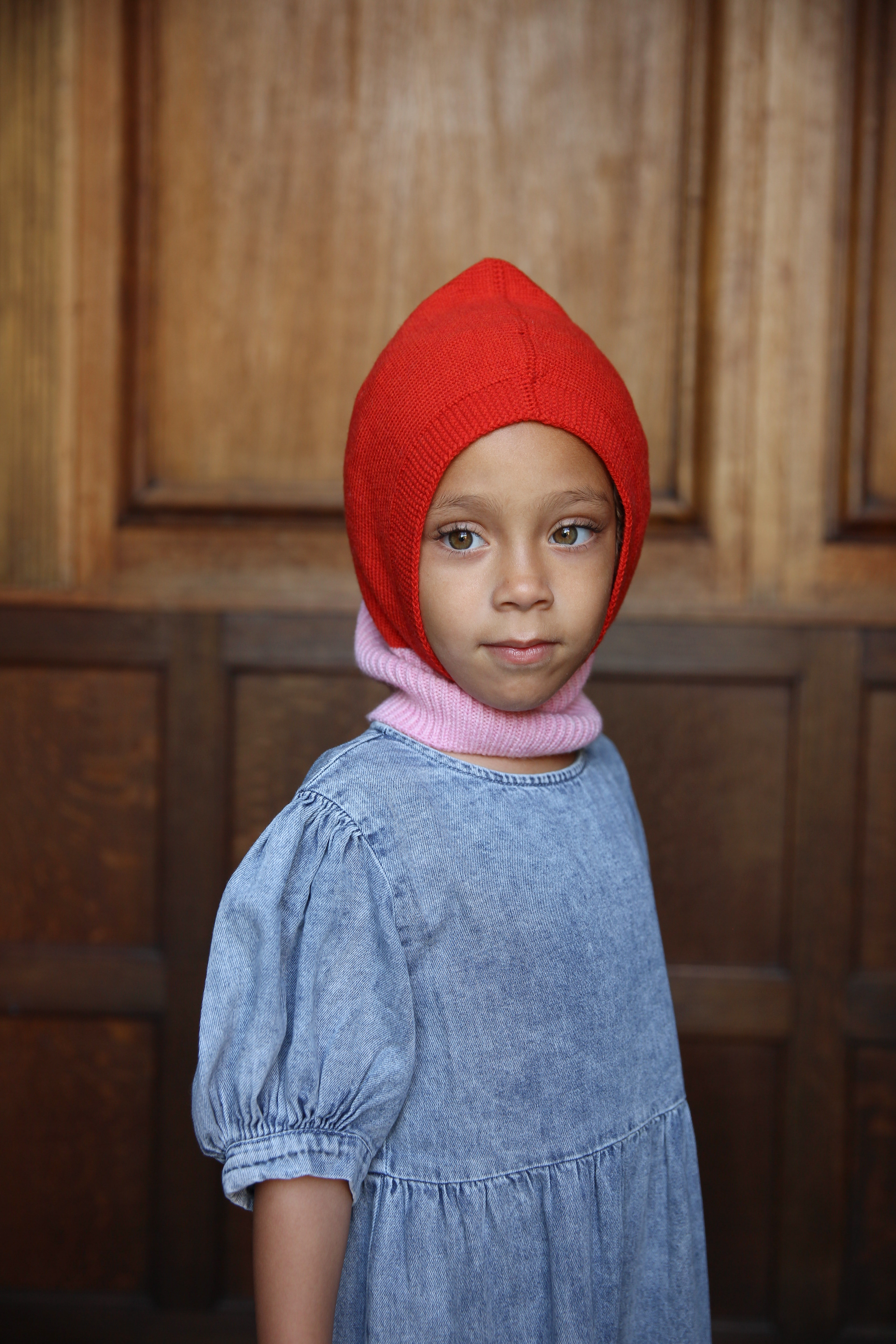 Kominiarka Eddy z wełny merino HVID - Cotton candy/Red