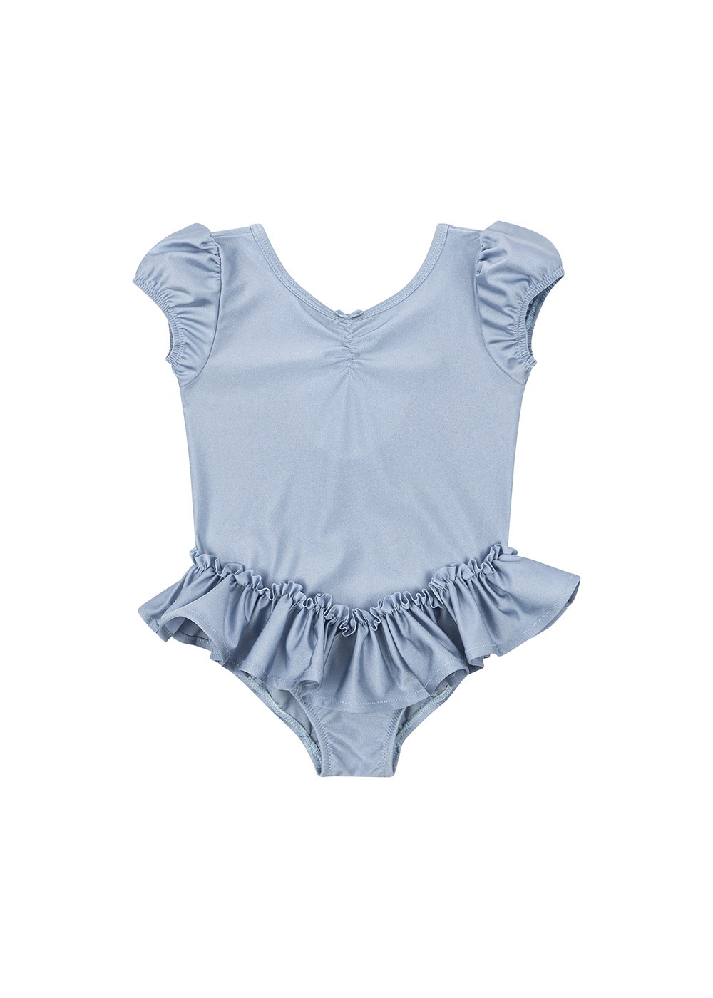 Klasyczny kostium tutu dla małych baletnic, wykonany z błyszczącego, elastycznego materiału, który zapewnia wygodę i swobodę ruchów. Dopasowany krój, bufiaste rękawy i falbaniasta spódnica wzdłuż talii.