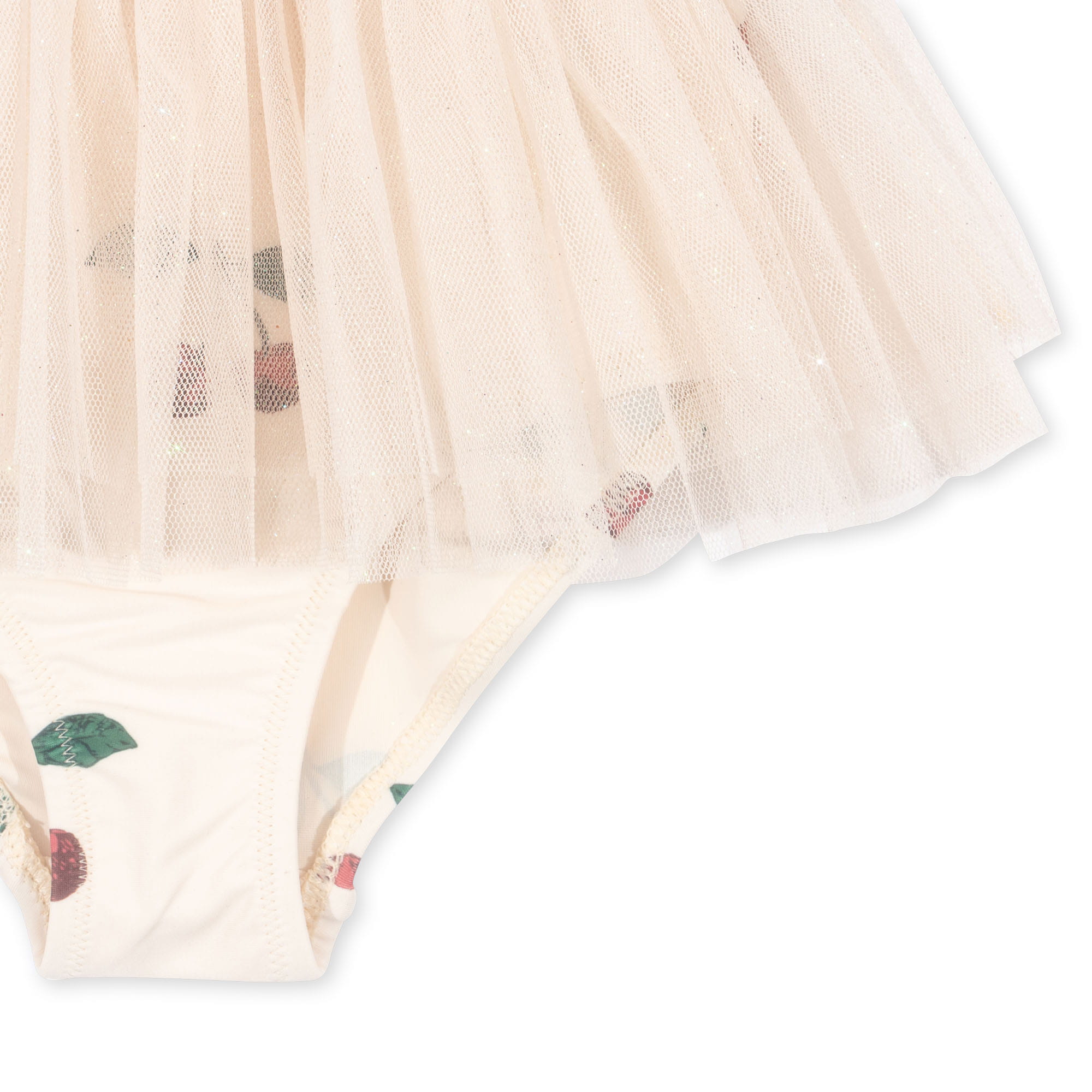 Wykonany w 80% z poliestru pochodzącego z recyklingu i w 20% z elastanu. Posiada tiulową "spódniczkę" ozdobioną gwiazdkami.