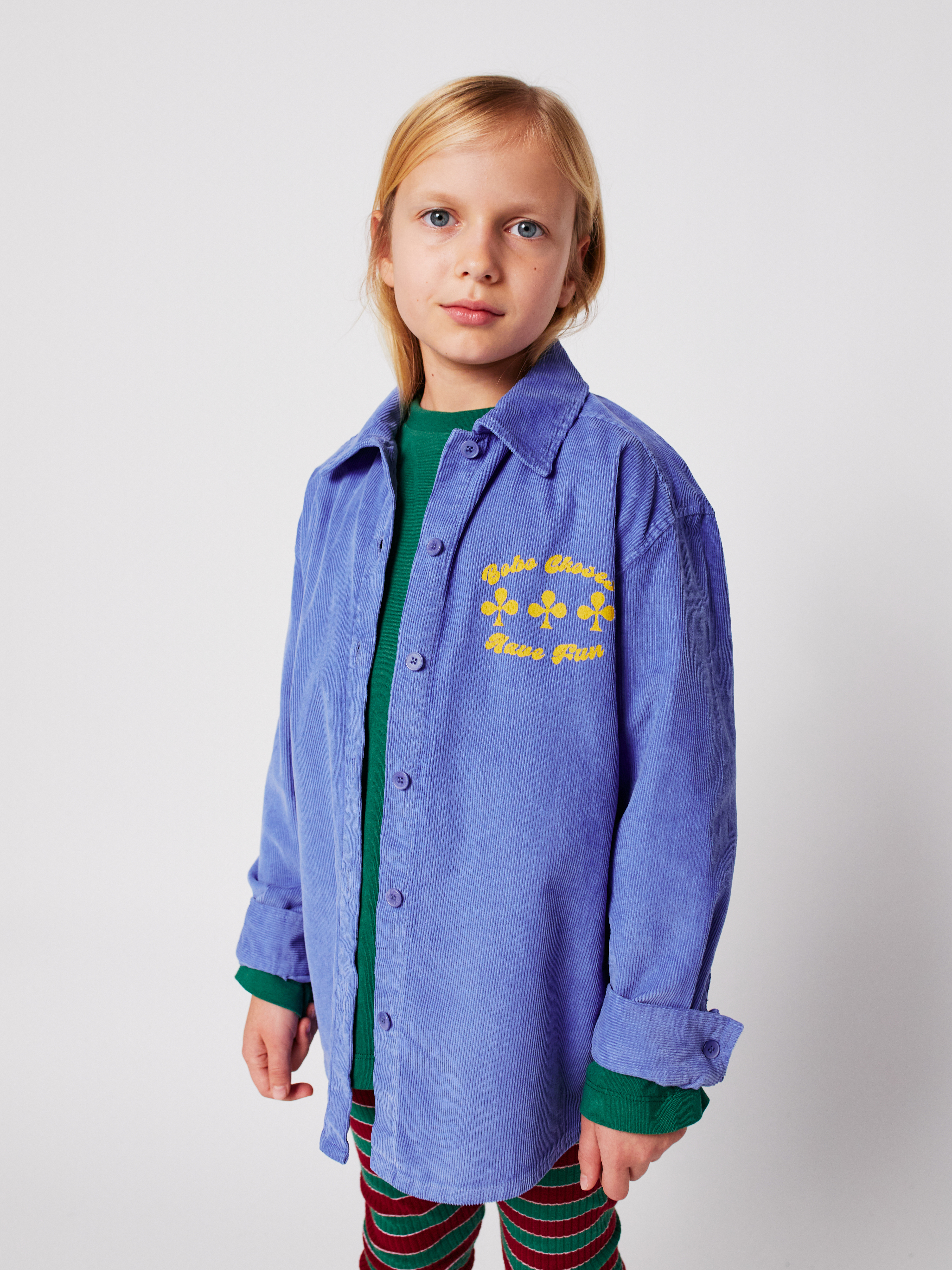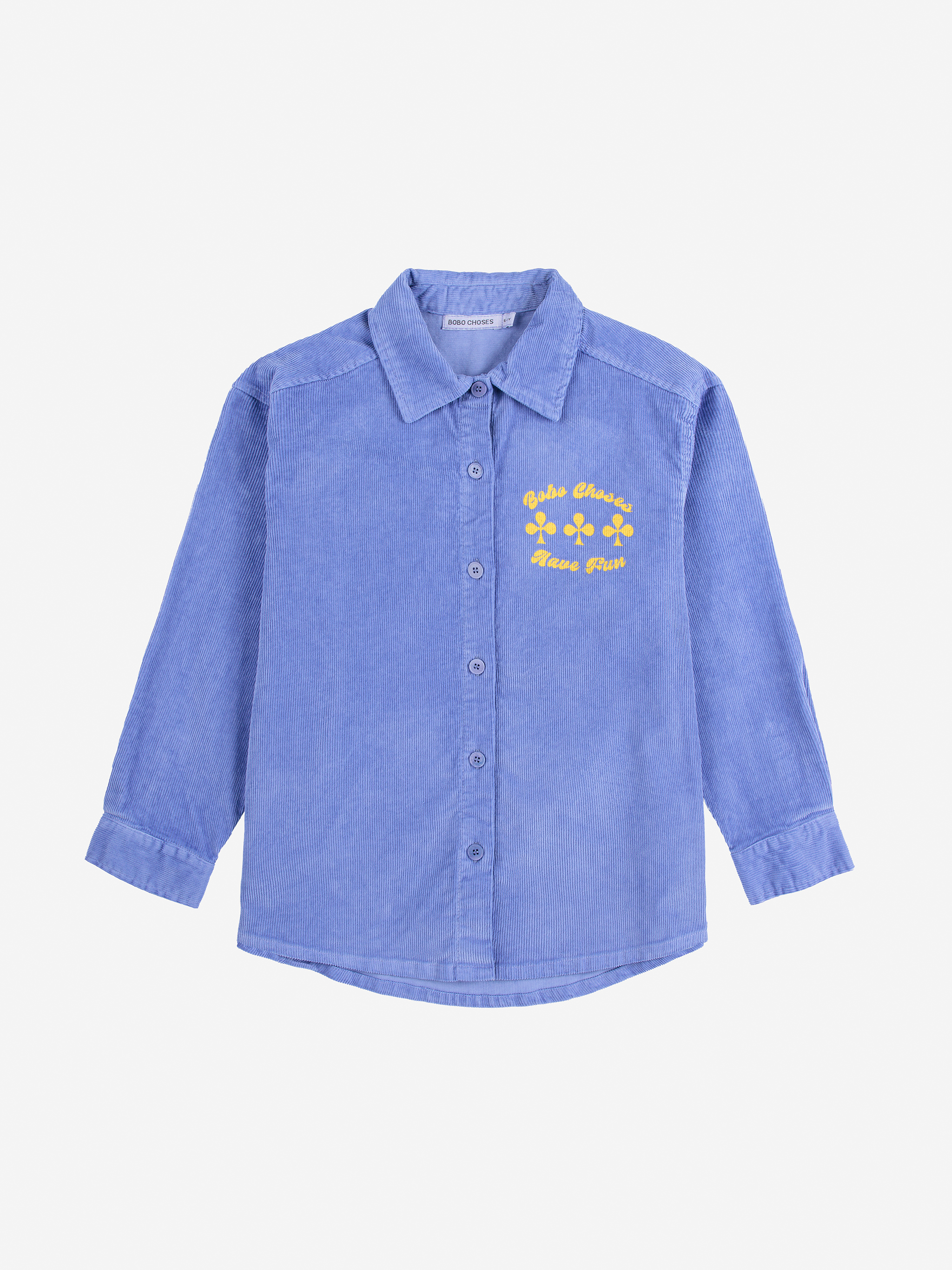 Sztruksowa koszula w kolorze lawendowym na długi rękaw Have Fun - Lavender od Bobo Choses.. Zaprojektowana z dopasowanym kołnierzykiem, długimi rękawami, zapięciem na guziki z przodu, mankietami zapinanymi na guziki, luźnym krojem, koszulowym dołem i karczkiem z tyłu . Wyprodukowano w Hiszpanii.