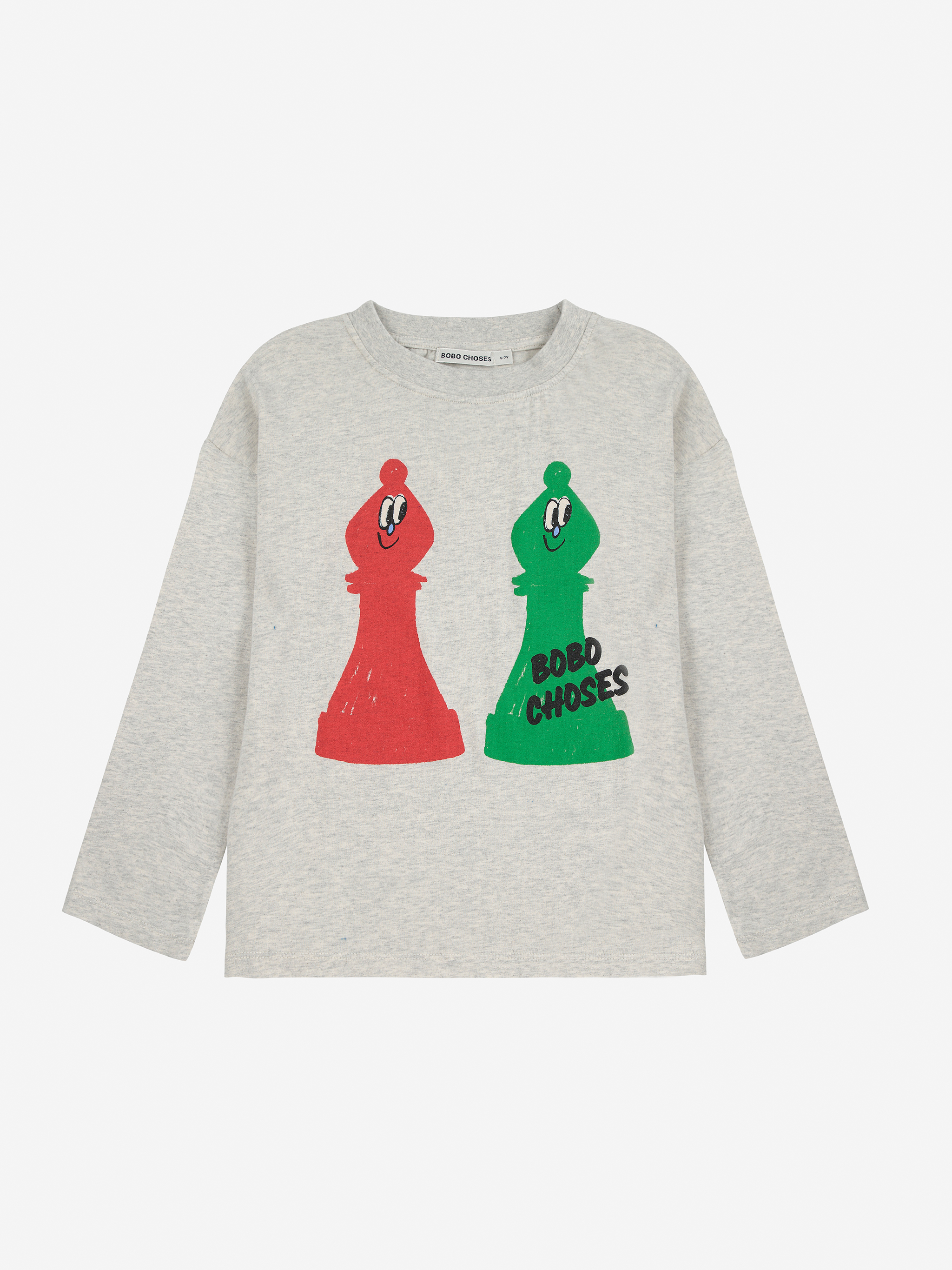 Koszulka na długi rękaw Checkmate - Light heather od Bobo Choses. Luźny krój, długie rękawy i okrągły dekolt. Wyprodukowana w Portugalii.