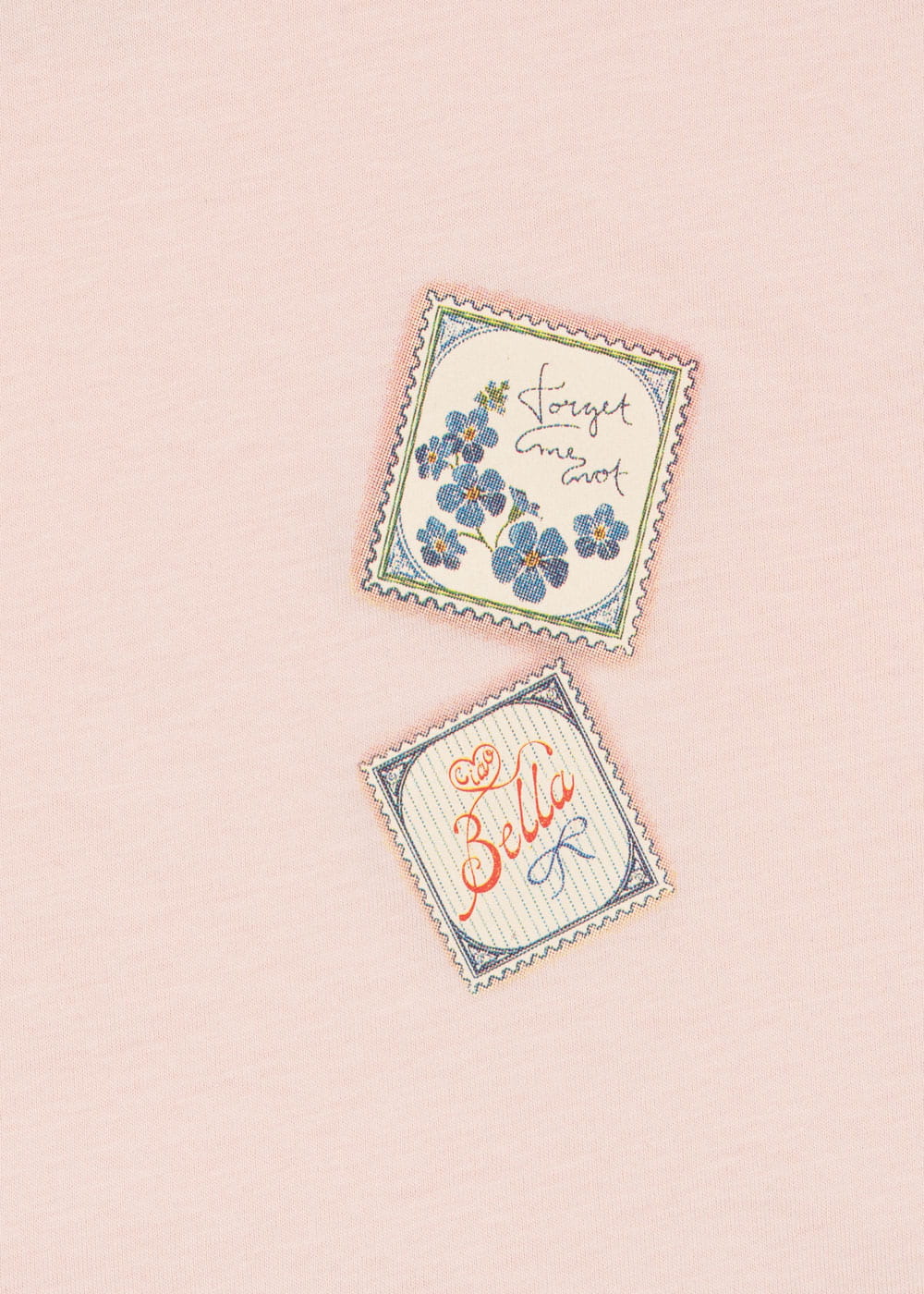 Ozdobiona uroczymi znaczkami, które symbolizują list miłosny.