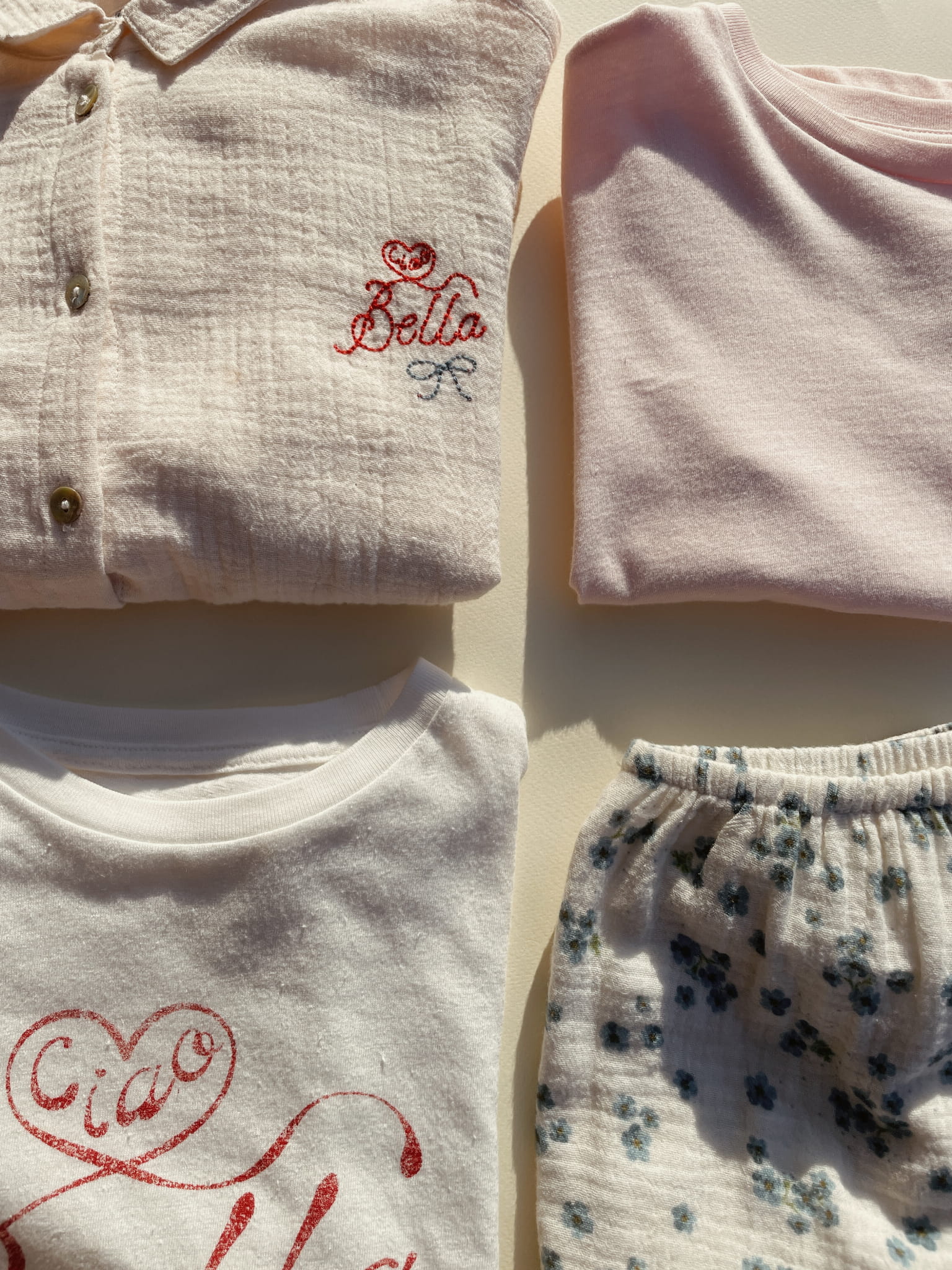 to efekt wyjątkowej współpracy duńskiej marki z Rosie Huntington-Whiteley – modelką i mamą dwójki dzieci, Jacka i Isabelli. Inspiracją do stworzenia projektów były osobiste doświadczenia Rosie związane z macierzyństwem – w kolekcji znalazły się nadruki rysunków jej syna, ulubione kwiaty, a także hasło „Ciao Bella” dedykowane córce. To subtelna, romantyczna i zarazem bardzo emocjonalna linia ubrań i akcesoriów dziecięcych, stworzona z myślą o codziennym komforcie i pięknie detalu. Wspólnie z Konges Sløjd, Rosie stworzyła kolekcję będącą hołdem dla dzieciństwa – pełnego czułości, lekkości i ponadczasowego stylu.