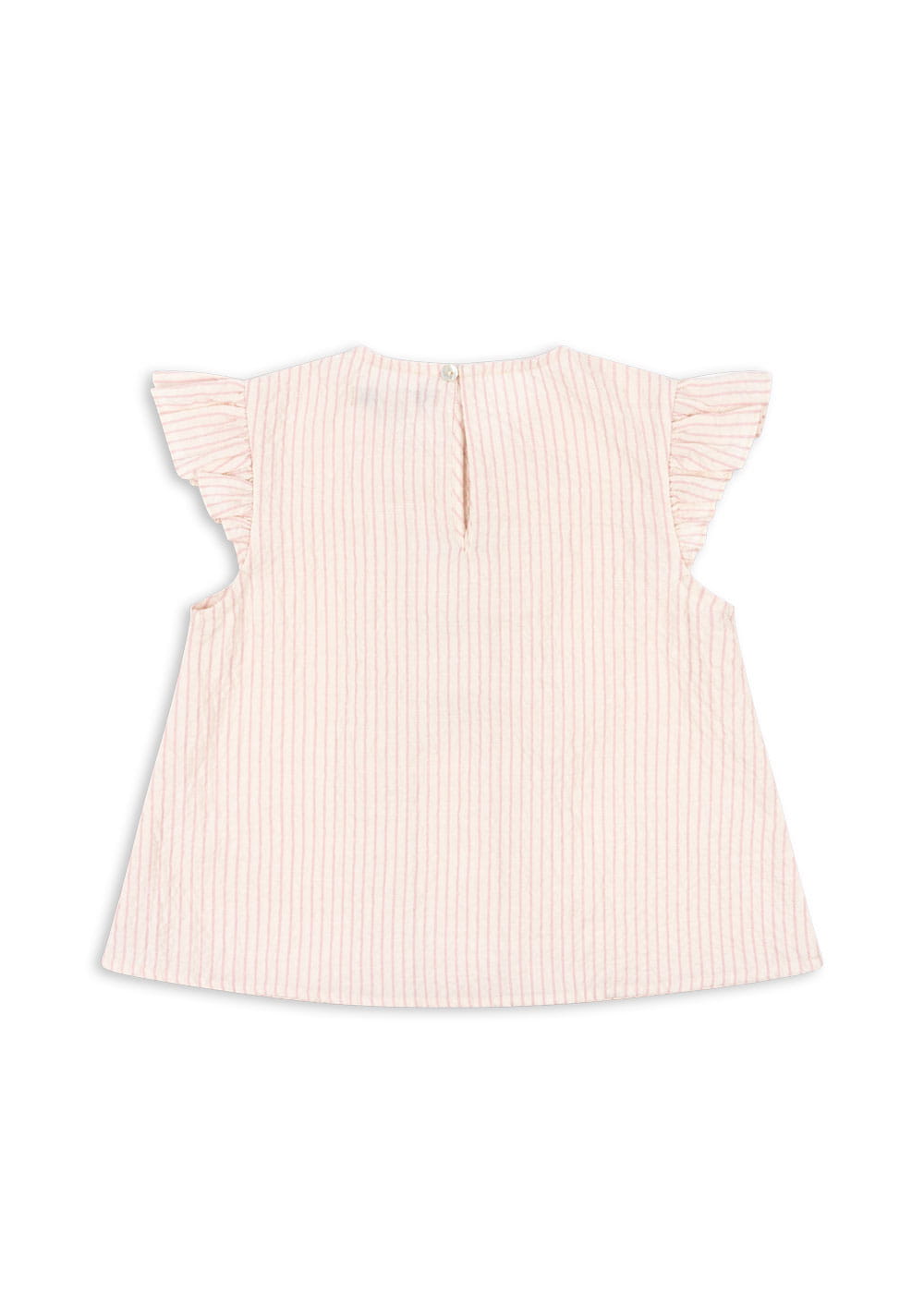 Bluzka wykonana z miękkiego materiału seersucker z falbaniastymi rękawami.