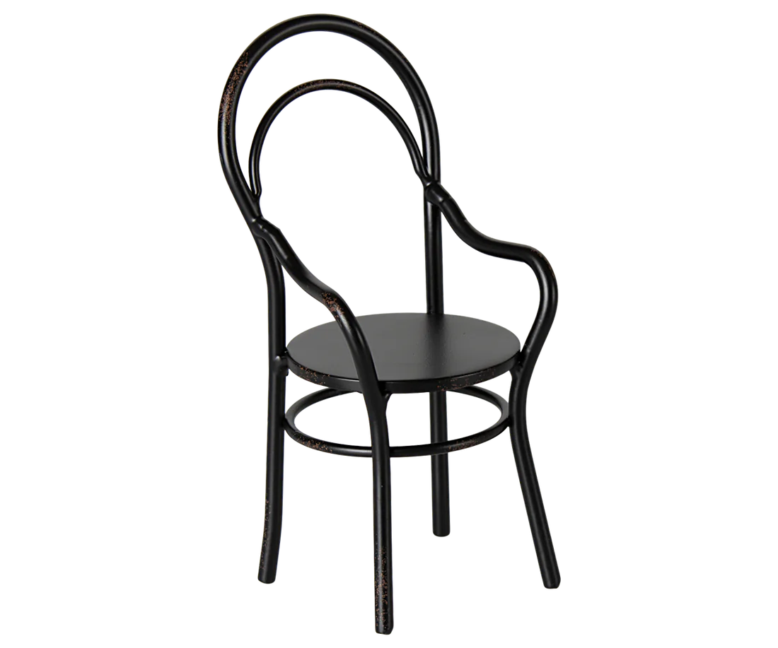 Piękne krzesło vintage z podłokietnikiem - dla wygodnego siedzenia. Przeznaczone dla myszek i króliczków w rozmiarze Micro. Idealnie pasuje do domku dla myszek.
