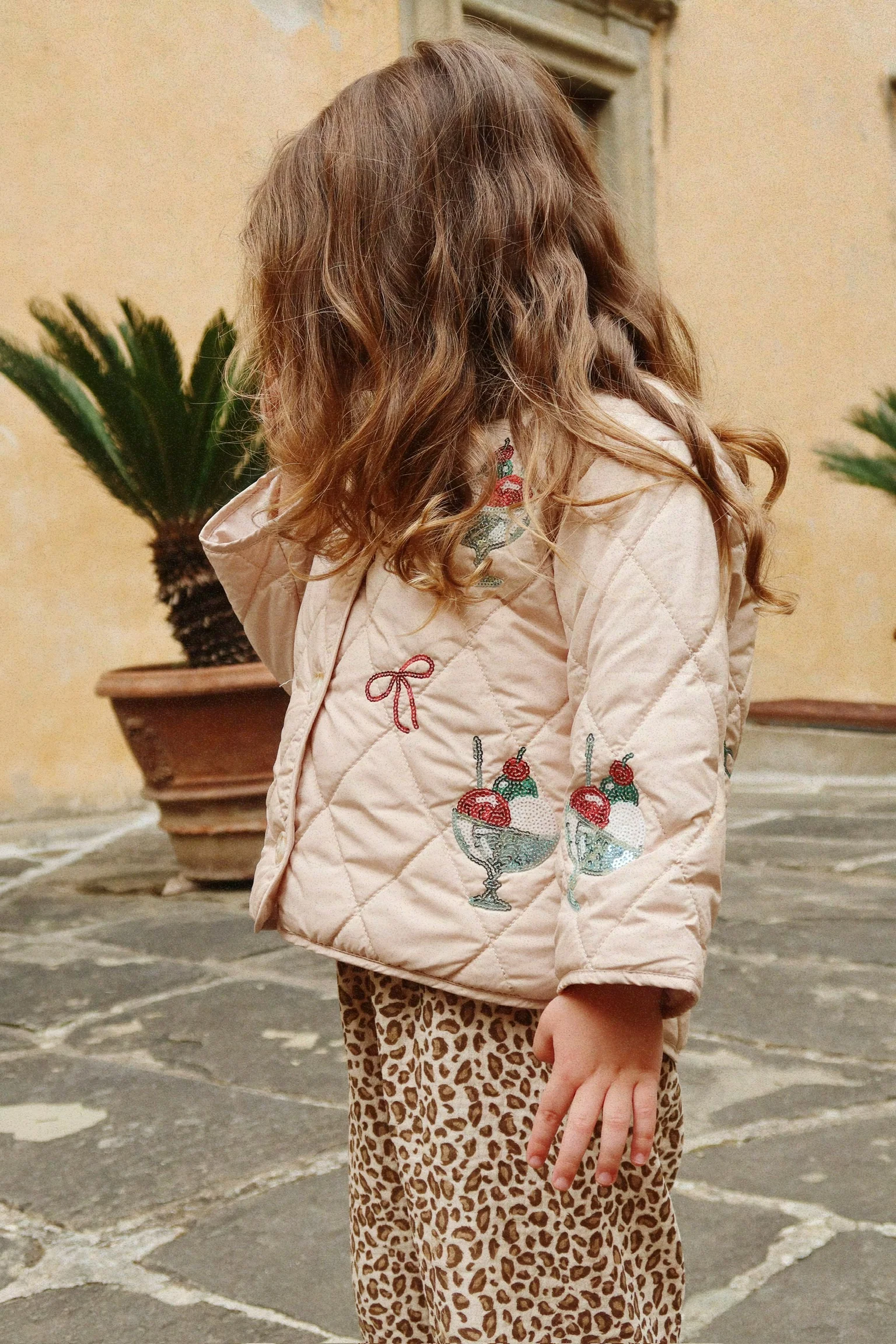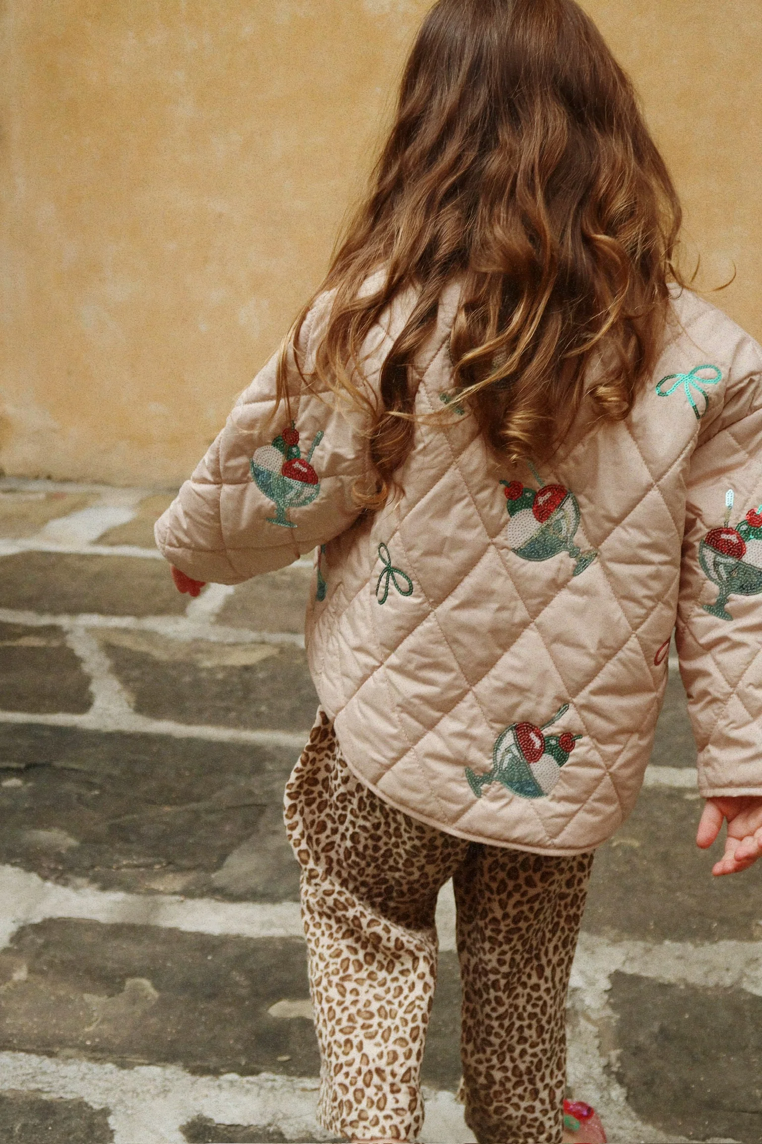 Lekko pikowana kurtka z ozdobnymi cekinami.