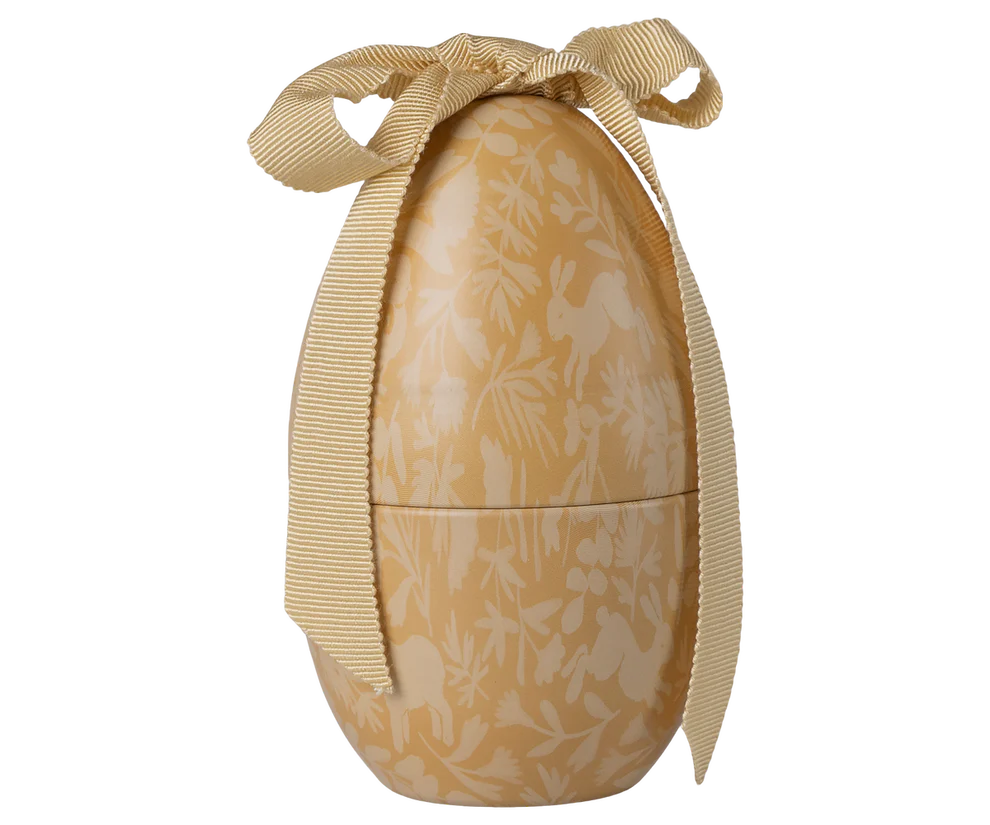 Jajko wielkanocne Maileg ma piękny, nowy nadruk na całej powierzchni. Przyjrzyj się uważnie nadrukowi i spróbuj znaleźć różne zwierzątka. Jajko ma dużą, miękką kokardę na górze, która nadaje mu ekskluzywny wygląd.