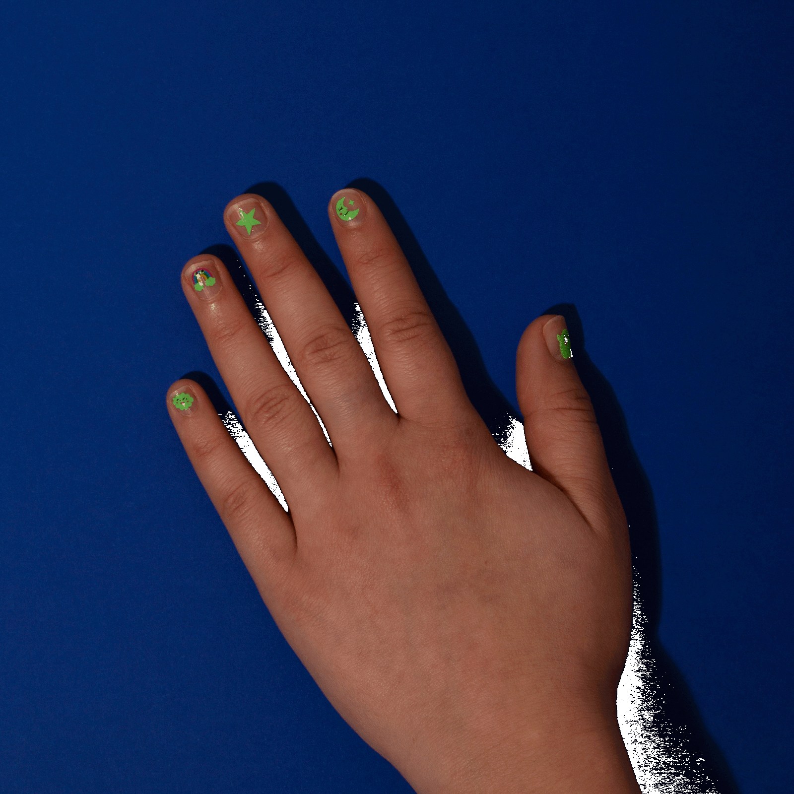 W tym niezwykłym opakowaniu znajdziecie 200 zabawnych, kolorowych, a przede wszystkim fluorescencyjne naklejeki na paznokcie. Są bardzo łatwe w aplikacji i pozwolą w prosty sposób odmienić malutkie dłonie.