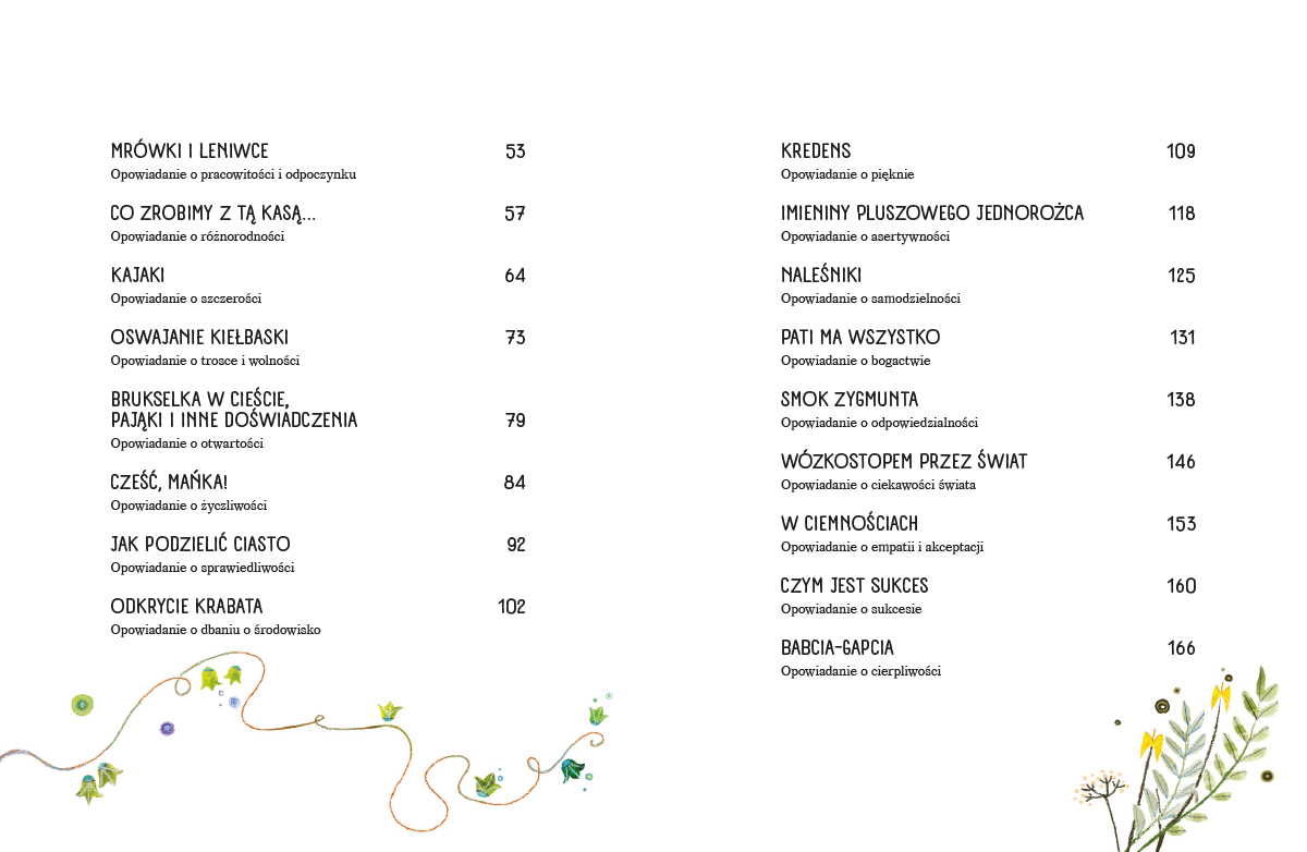 Zapraszamy do opowieści, które pozwolą odpowiedzieć na te oraz inne ważne pytania, a także skłonią do refleksji i rozmowy. Niezależnie od tego, czy macie 6, 10 czy 100 lat, ta książka jest dla was. Przygotujcie się na niezwykłą podróż w głąb siebie.