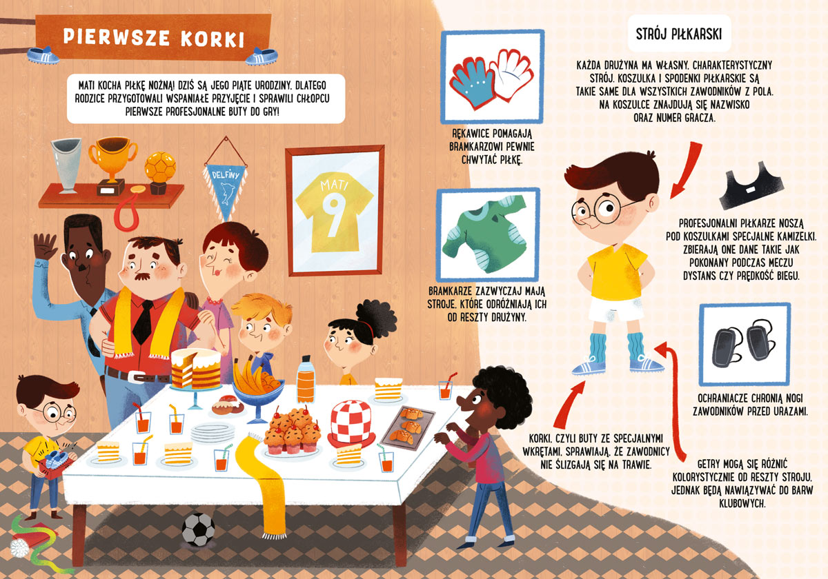 Mati z całą rodziną wybiera się na mecz reprezentacji Polski. Wszyscy malują twarze farbkami i zakładają szaliki w biało-czerwonych barwach, by okazać wsparcie drużynie. Po meczu chłopiec marzy już tylko o jednym – chce zostać piłkarzem! Na urodziny dostaje sportowe buty, a rodzice zapisują go do szkółki piłkarskiej. Tam Mati pozna zasady gry w piłkę, dowie się, na czym polega trening, i pozna przedmeczowe rytuały. Przede wszystkim jednak znajdzie nowych przyjaciół i zagra najprawdziwszy mecz!