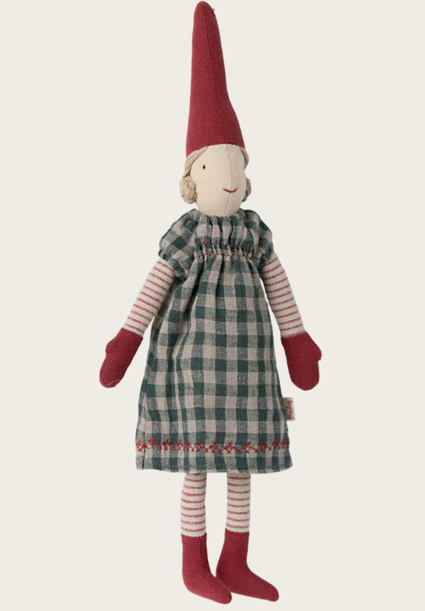 Pixy Maileg - Kolekcja Mailegs Pixy zawiera wiele różnych stylów - wszystkie ubrane w piękne świąteczne ubrania wykonane z ekskluzywnych materiałów. Są urocze w każdej świątecznej dekoracji i można je mieszać i dopasowywać w różnych rozmiarach i kolekcjach..