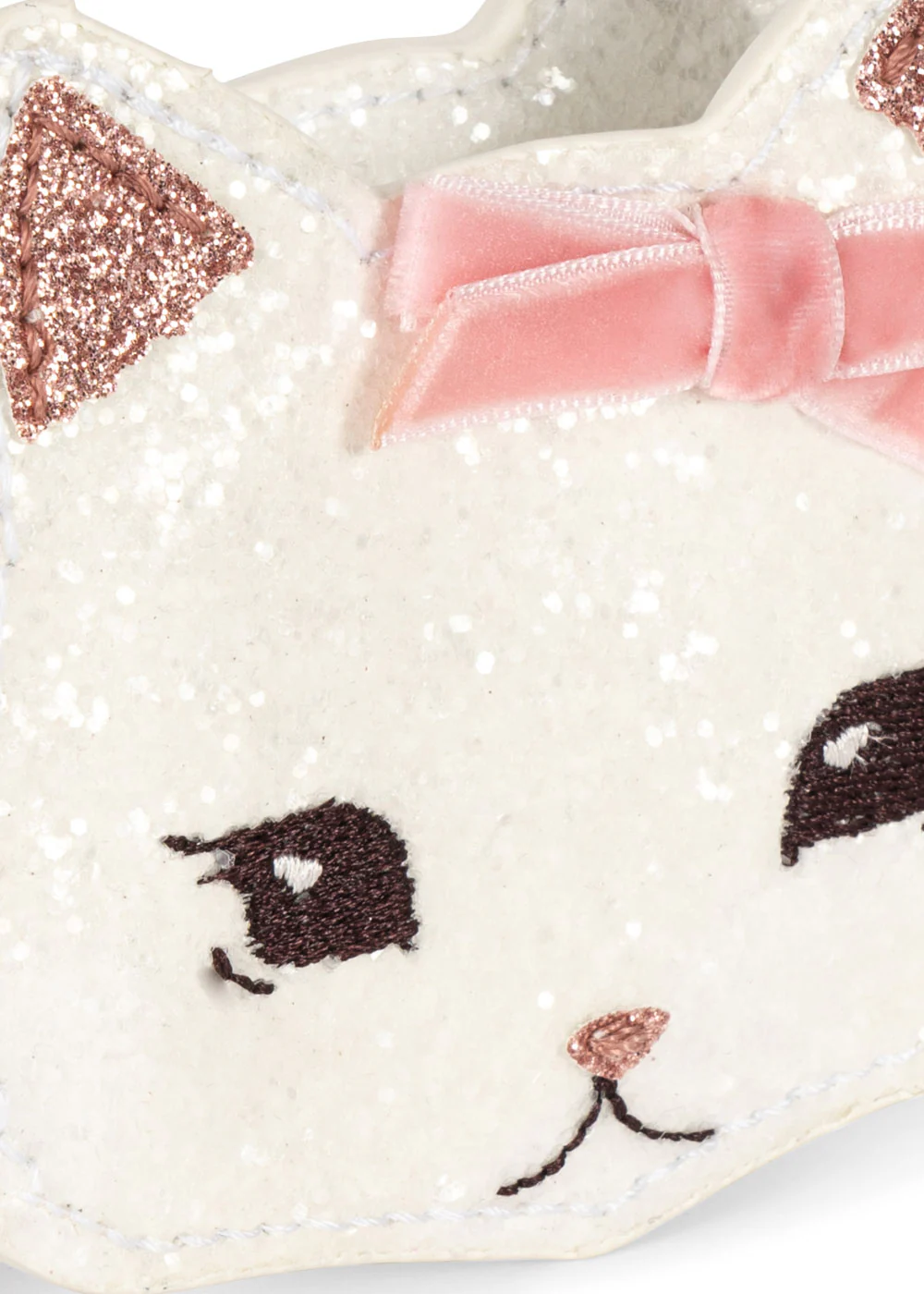 Błyszczący portfel z motywem kotka, z jedną komorą i zapięciem na suwak.