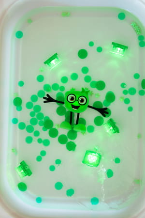 Glo Pals, Zestaw postać Pippa oraz 2 kostki sensoryczne świecące w wodzie, w kolorze zielonym.