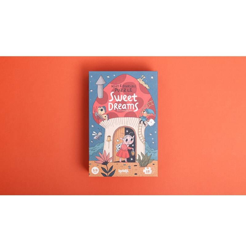 Dwustronna, składana łamigłówka w kształcie grzybka, której główną bohaterką jest wymarzona wróżka. Puzzle z dużymi elementami do wyrobienia nawyku kładzenia się spać.