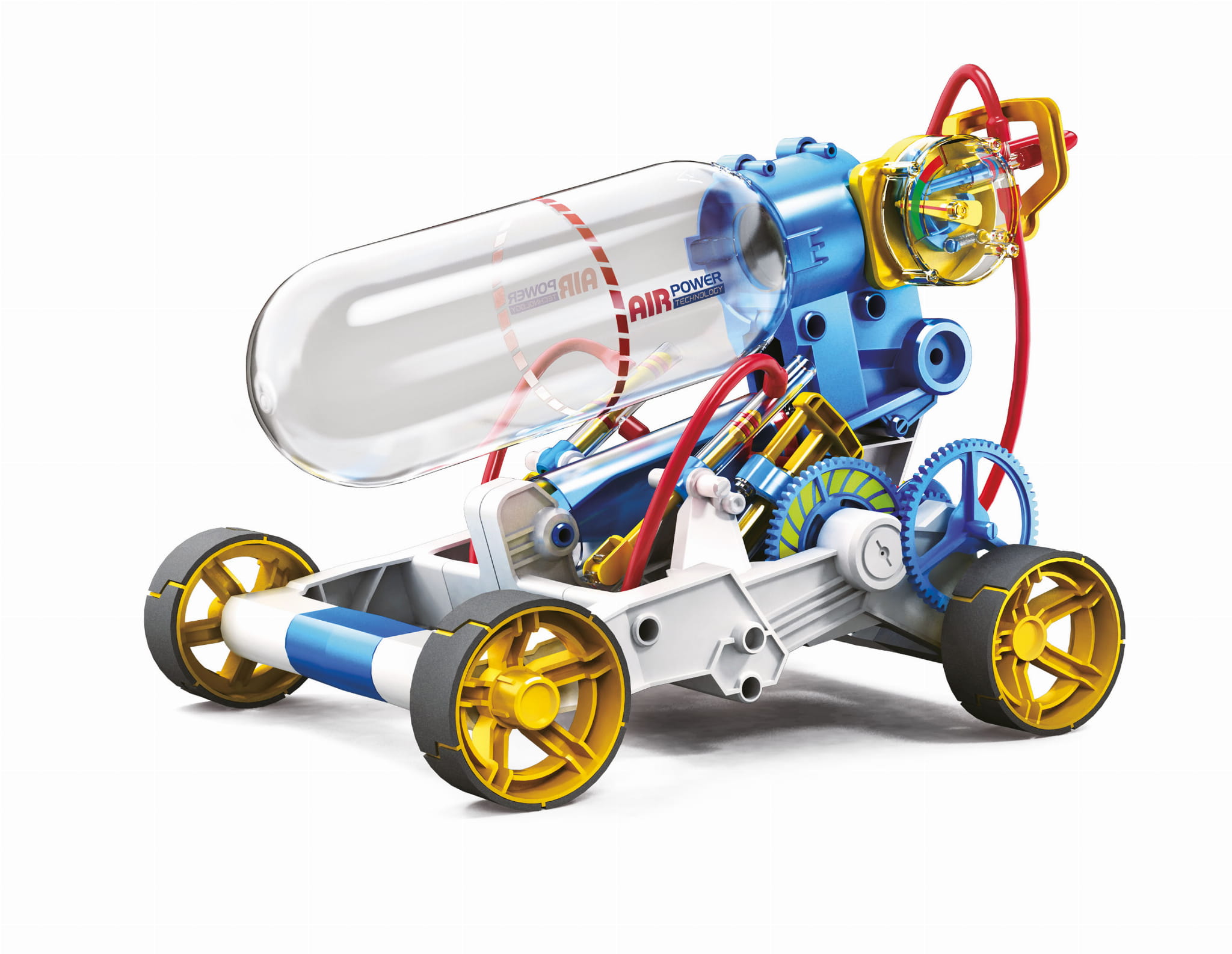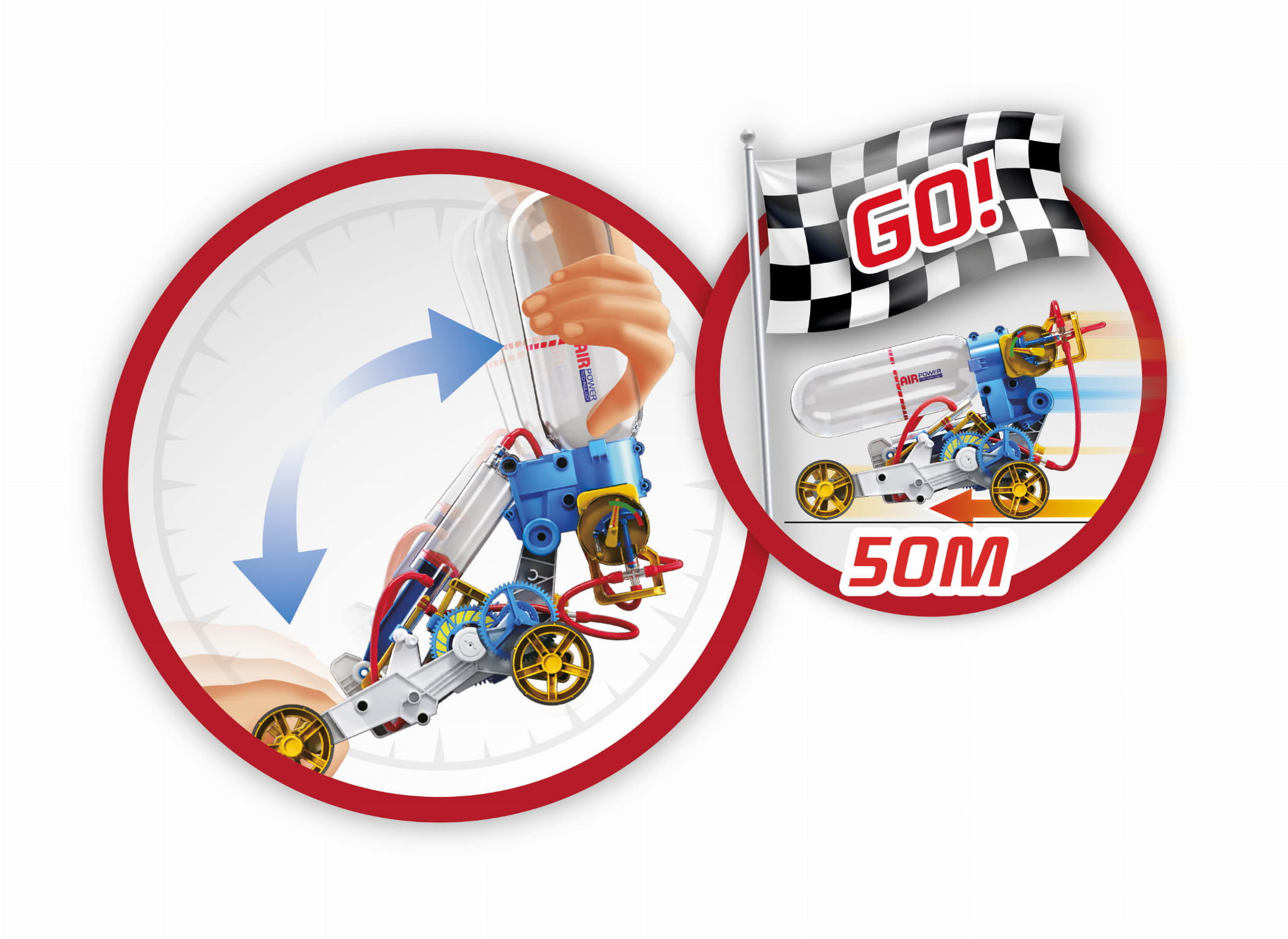 Połącz wszystkie części i zbuduj pojazd napędzany sprężonym powietrzem. Wystarczy użyć pompki do napełnienia