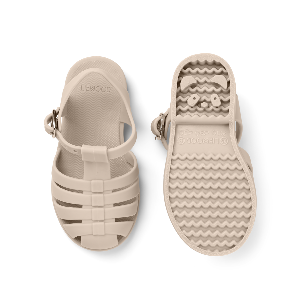 Elastyczne sandały Bre Sandals od Liewood, wykonane z PVC wolnego od szkodliwych chemikaliów. Idealny na plażę, ponieważ nie nasiąka wodą, a Twoje dziecko zostawia urocze ślady stóp w kształcie pandy na każdej miękkiej powierzchni.