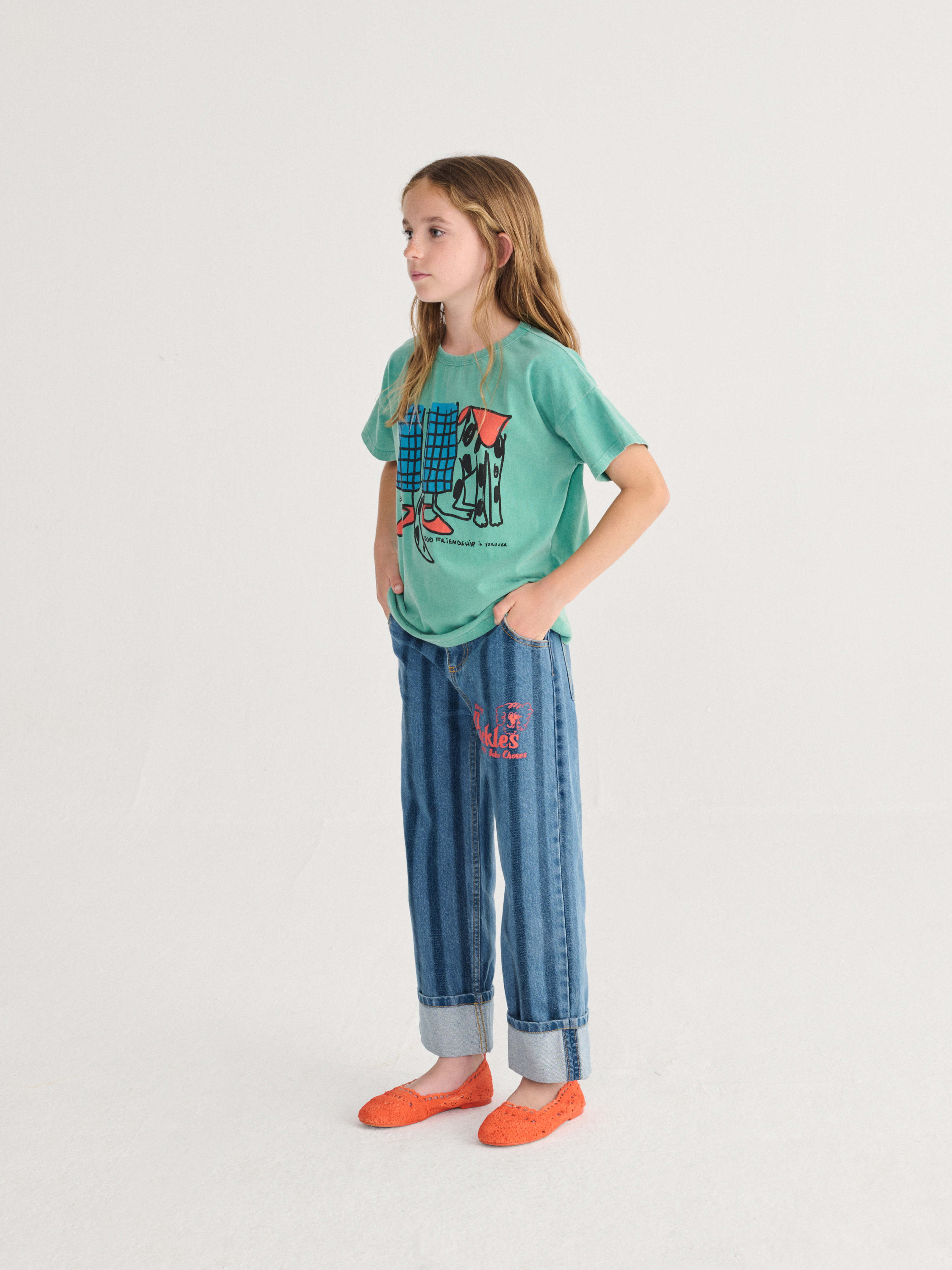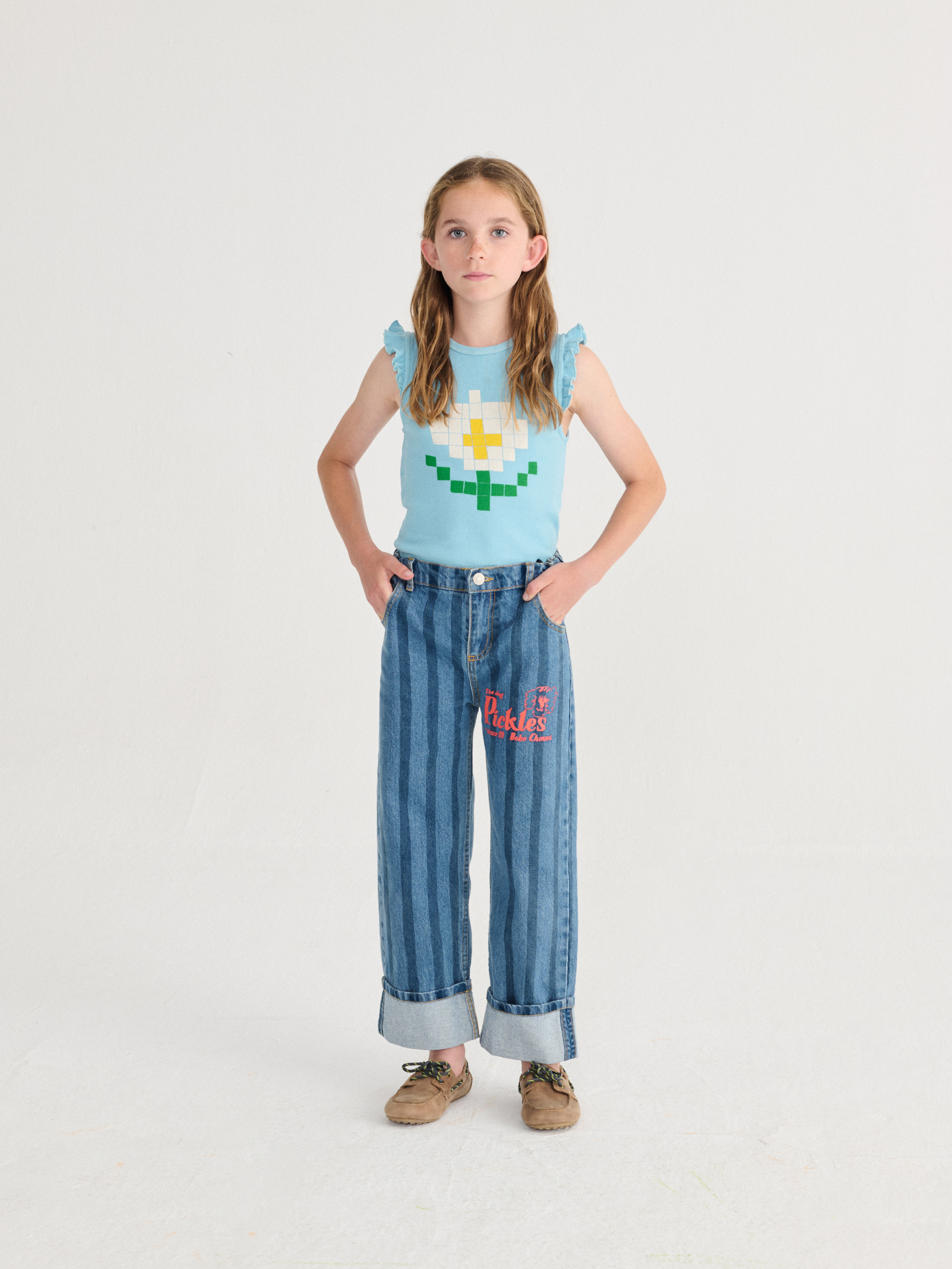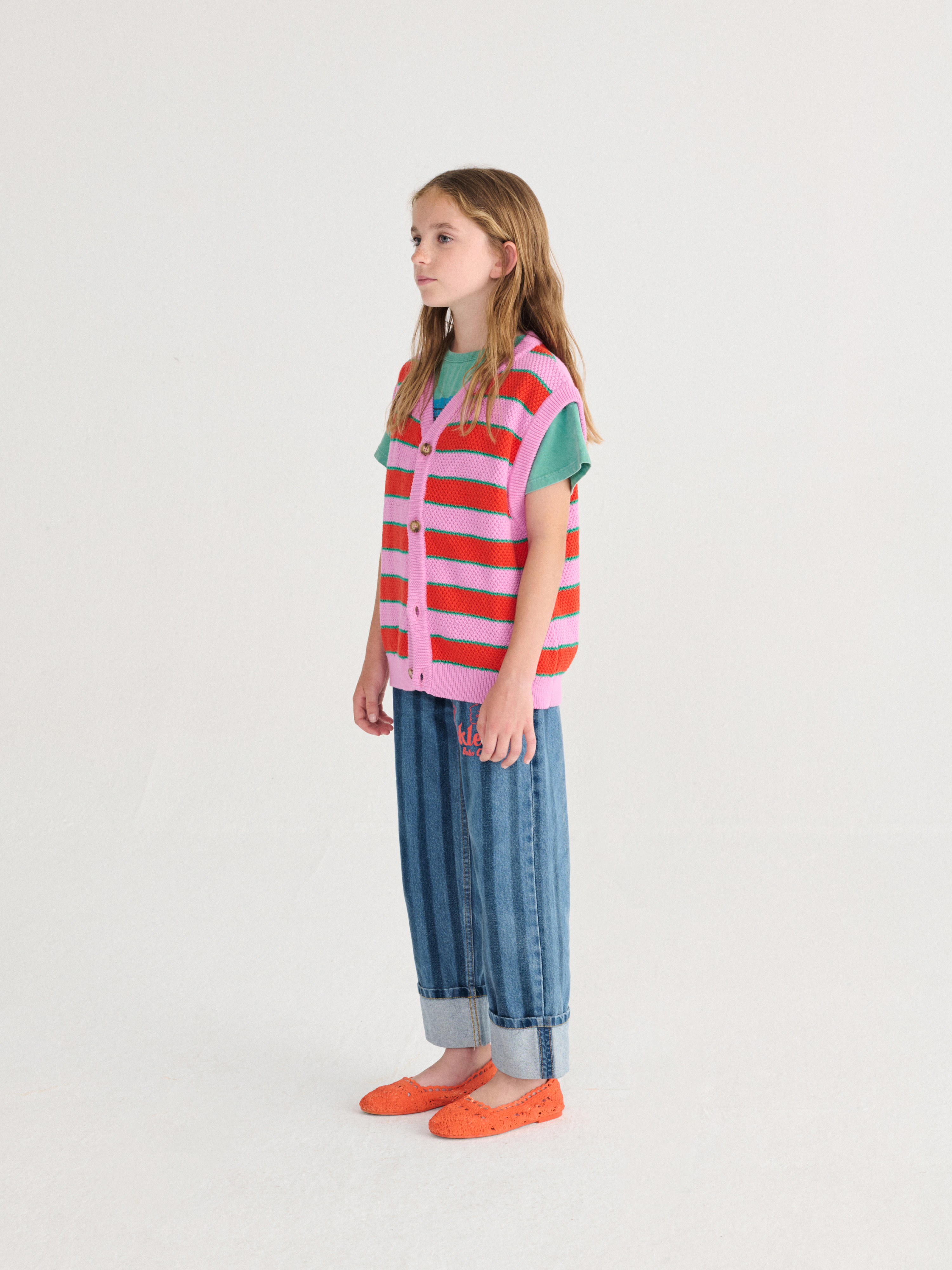 Spodnie Pickles The Dog Striped - Navy Blue od Bobo Choses. Granatowe spodnie. Zaprojektowane z regulowanym pasem, zapięciem na guziki z przodu, zamkiem błyskawicznym z przodu, prostym krojem, karczkiem z tyłu, szlufką na pasek, długim krojem, pięcioma kieszeniami, jeansowe i z podwiniętym dołem. Wyprodukowano w Hiszpanii.