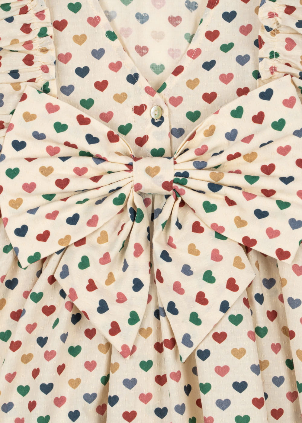 Sukienka z falbaniastymi rękawami i kokardkami.