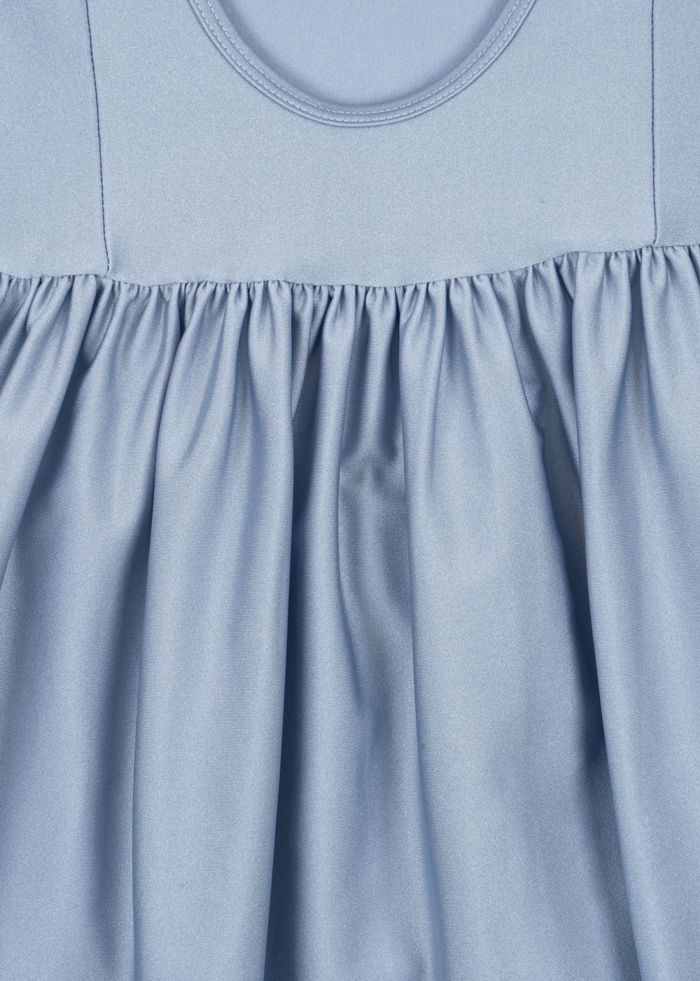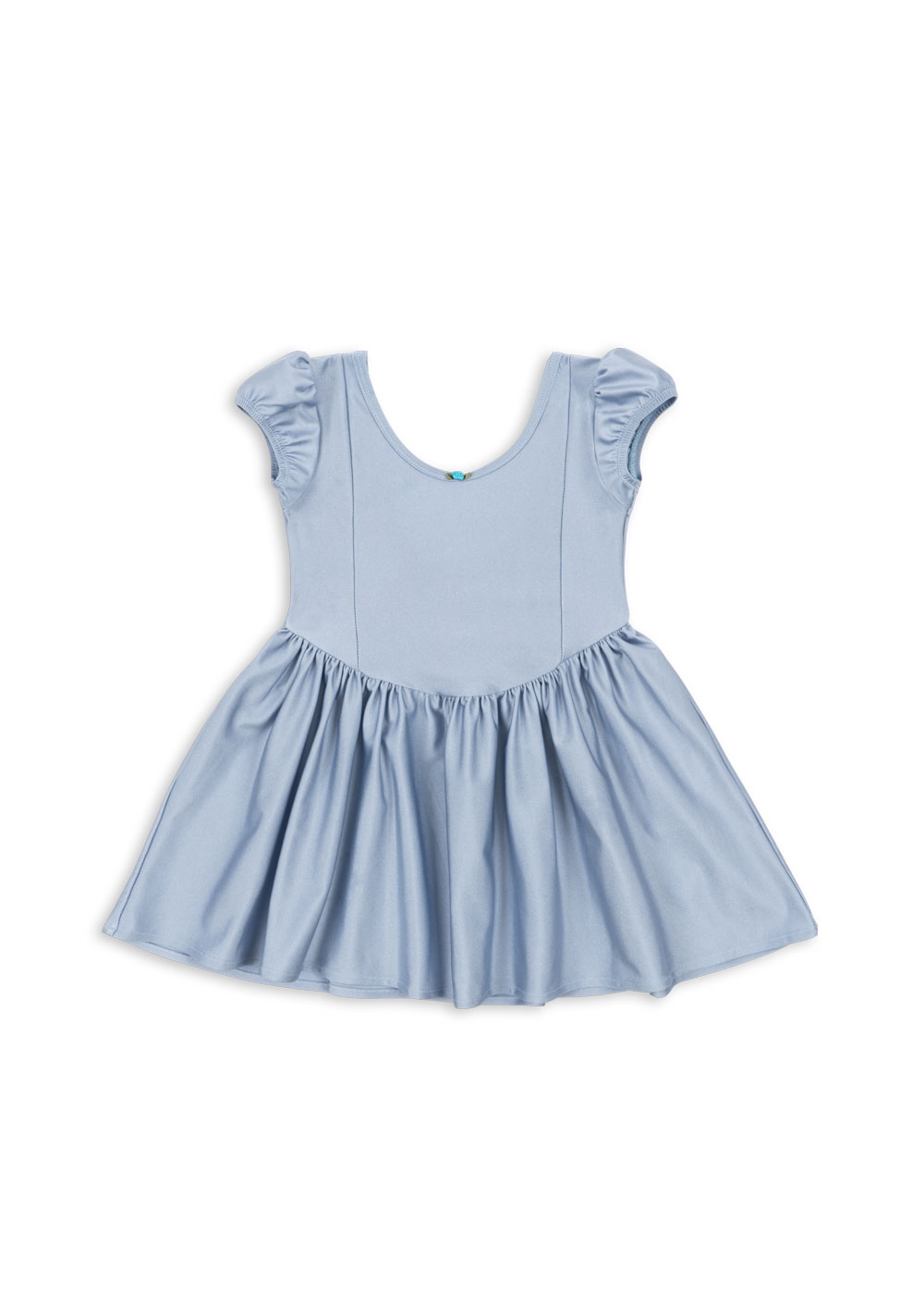 Inspirowany gimnastyką element garderoby wykonany z elastycznej, błyszczącej tkaniny, która zapewnia wygodę i swobodę ruchów. Sukienka Mousse ma wycięcie na plecach, bufiaste rękawy i spódnicę idealną do tańca i skoków.
