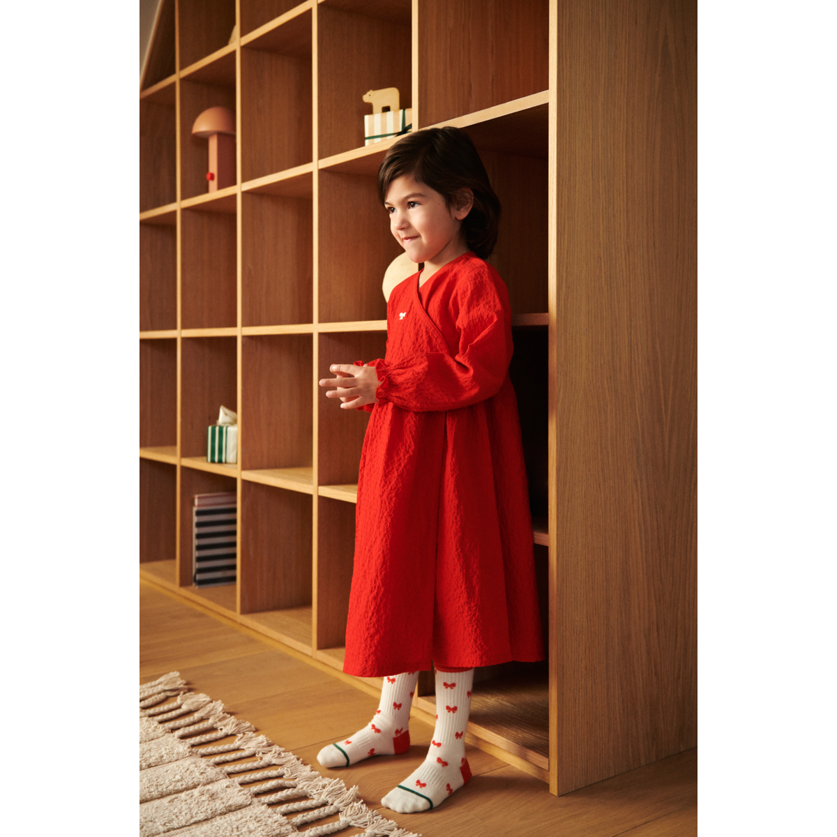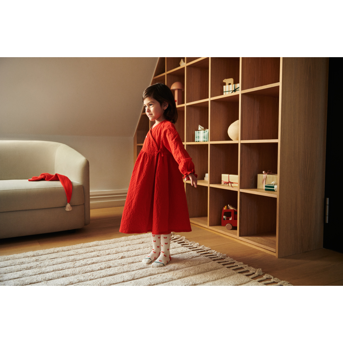 Pozwól swojemu maleństwu zakręcić się w sukience Cleo. Chrupiąca bawełna organiczna nadaje sukience strukturę, a jednocześnie jest supermiękka i wygodna podczas świątecznych zabaw i sesji tanecznych.