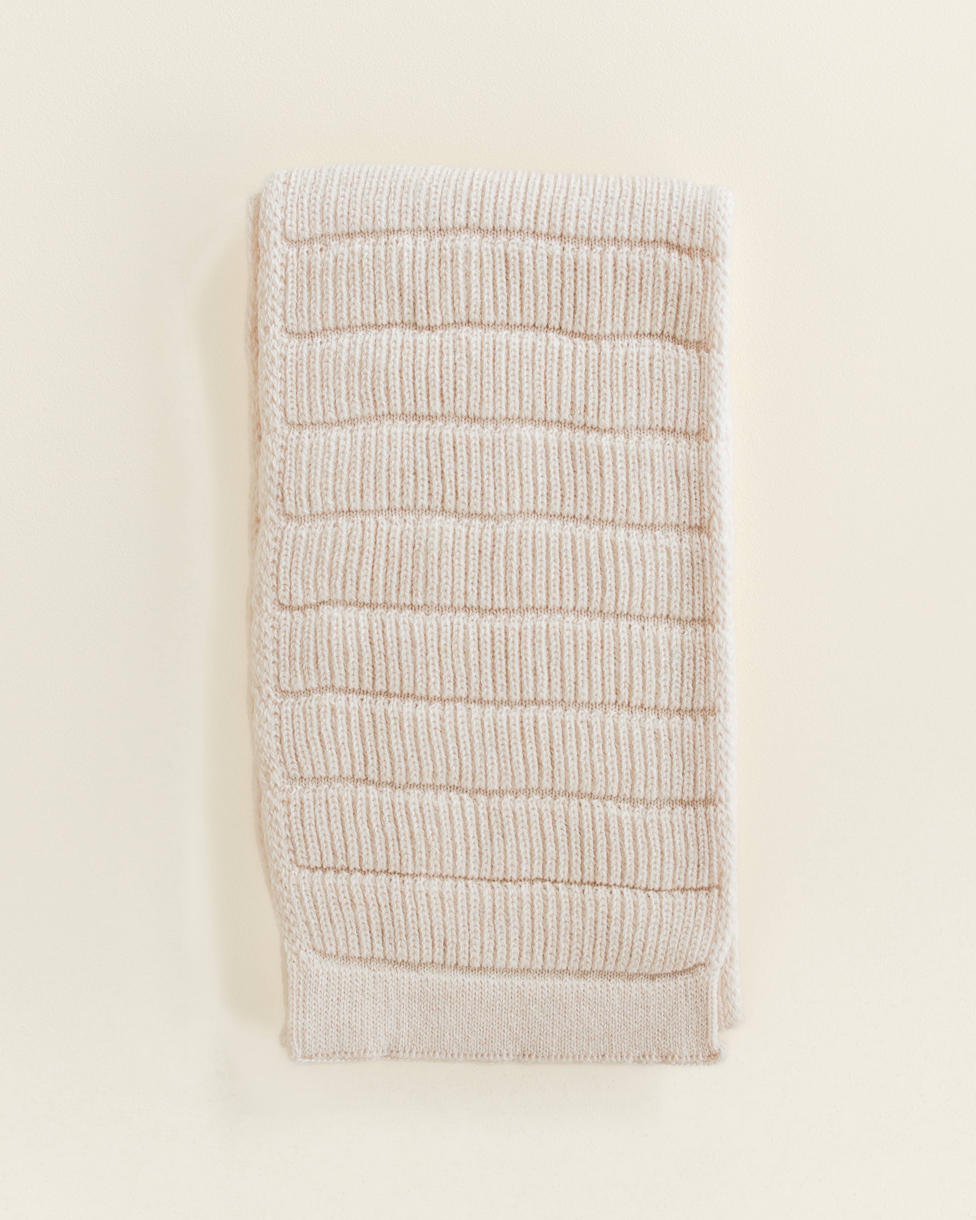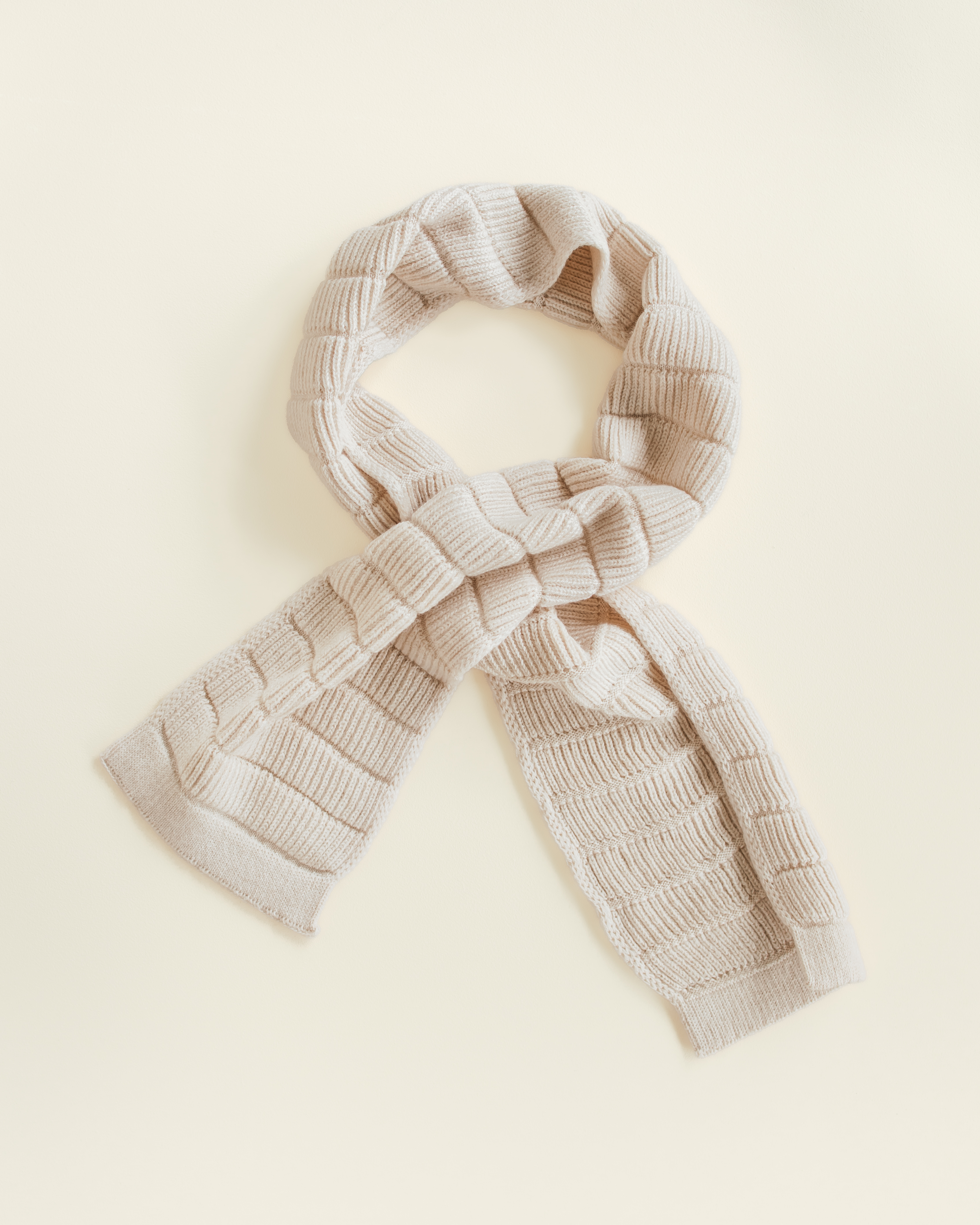 Jacobino to prążkowany szalik o czystym, strukturalnym wyglądzie i miękkim, wygodnym odczuciu. Tekstura nadaje mu spokojny, wyrafinowany charakter, a duża długość pozwala na łatwe owinięcie, zawiązanie lub drapowanie. Przemyślana warstwa na chłodniejsze dni: minimalistyczna i ponadczasowa.