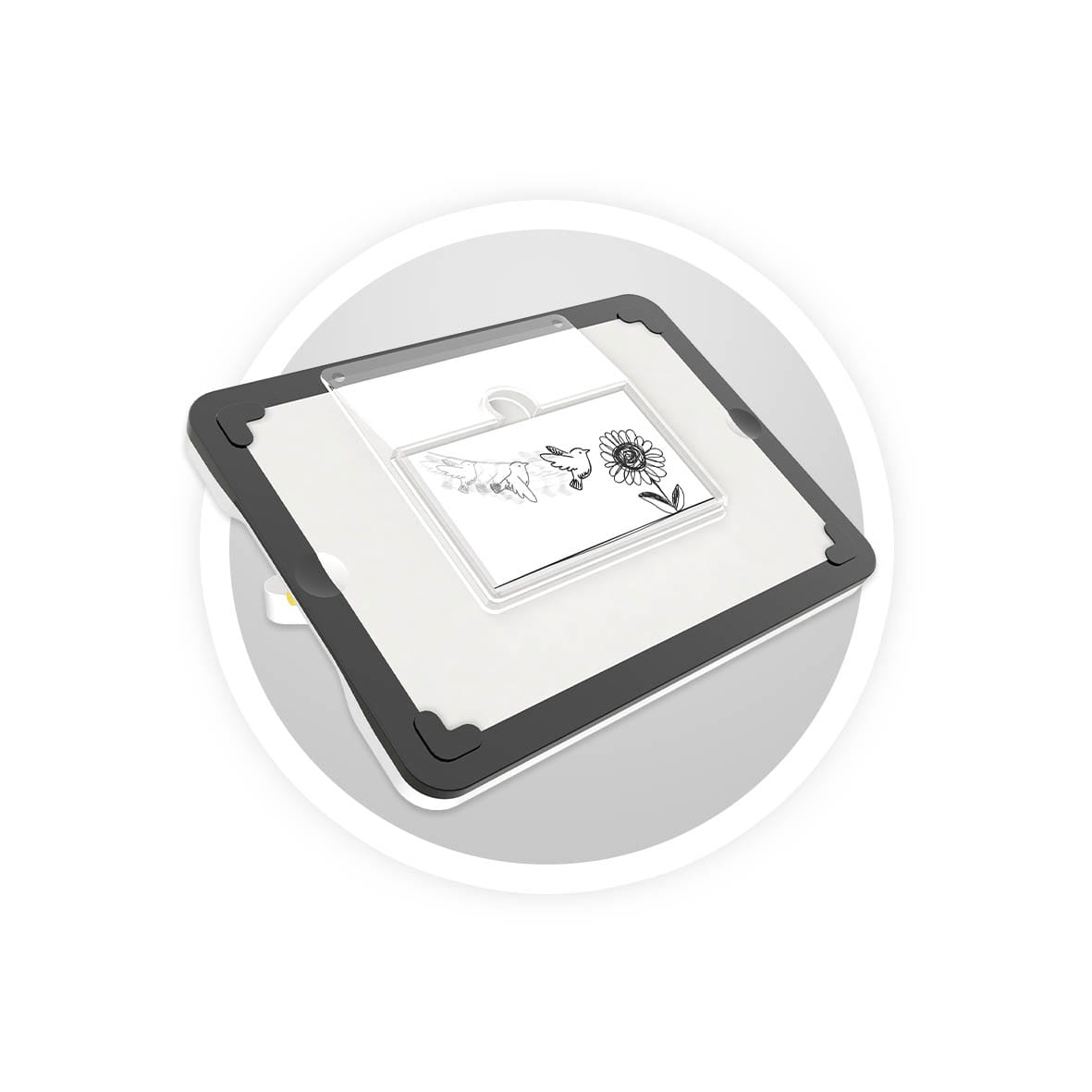 Flipbook: umieść adapter na tablecie. Narysuj pierwszy obrazek a następnie wsuń do adaptera. Połóż kolejny arkusz i odtwórz wcześniejszy obrazek z niewielkimi zmianami.