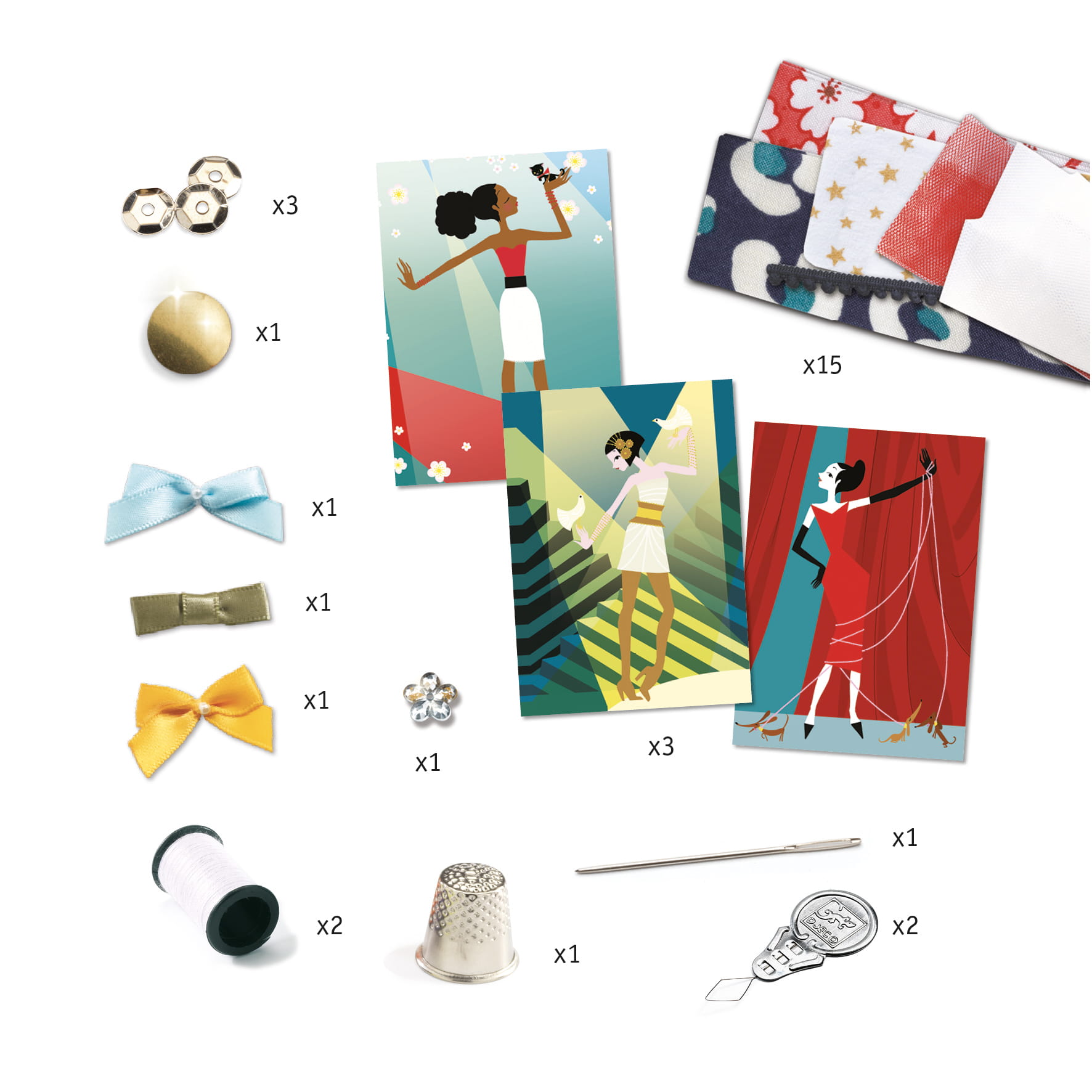 - fragmenty tkanin, wstążek, koronek niezbędne do wyszycia sukni