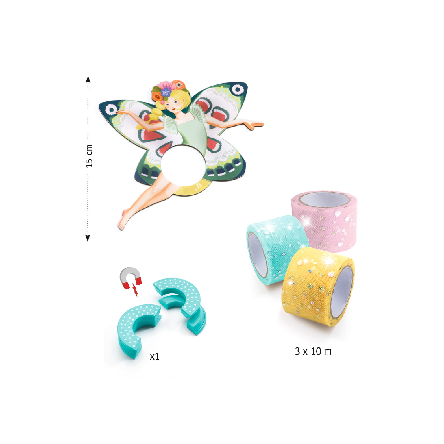 Kreatywny zestaw dla dzieci do tworzenia uroczych wróżek z tiulowymi pomponami. Zestaw zawiera wszystkie potrzebne kreatywne narzędzia: 3-kolorowe błyszczące wstążki 10m, magnetyczne narzędzie do robienia pomponów, 3 wróżki oraz instrukcję obsługi „krok po kroku”
