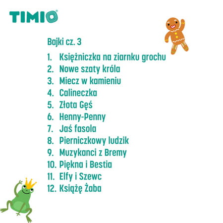 Nieodpowiednie dla dzieci poniżej 24 miesięcy. Delikatnie czyść miękką, wilgotną ściereczką. Do użycia dysków wymagany jest odtwarzacz TIMIO.