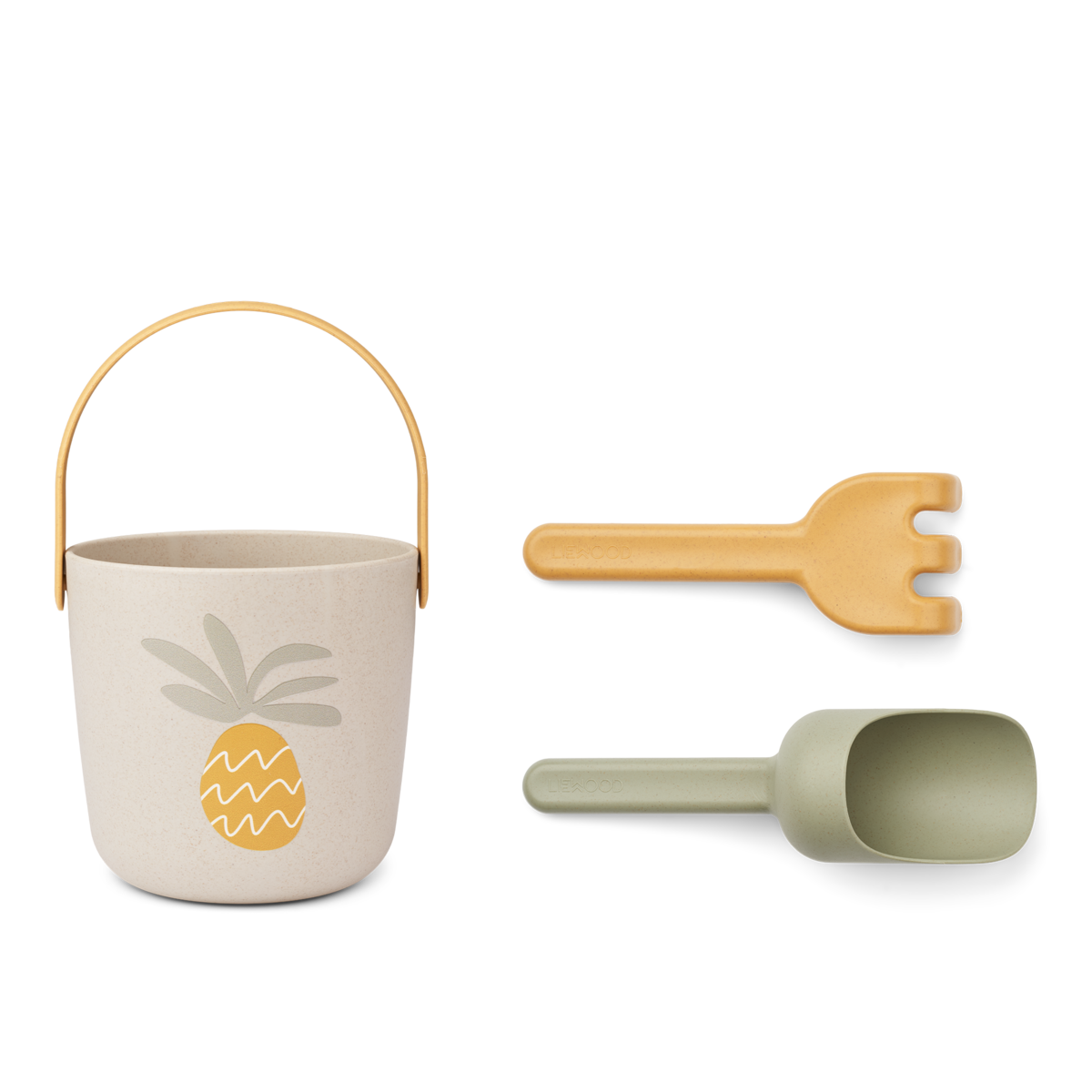 - W zestawie: Wiadro z uchwytem, łopata i grabie